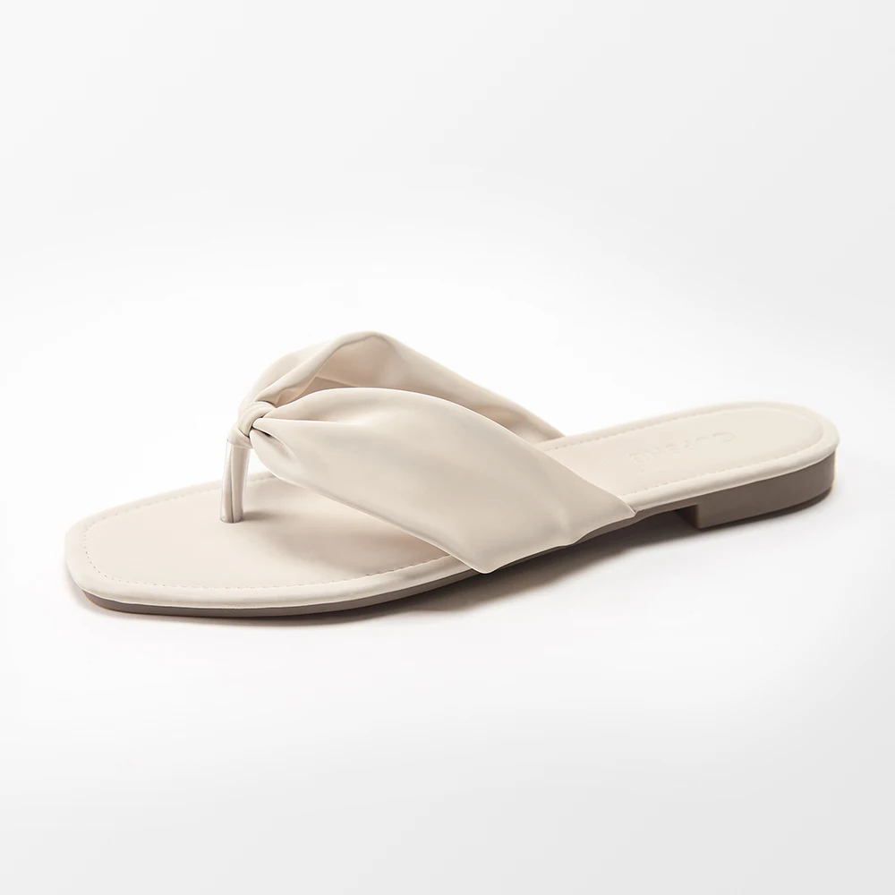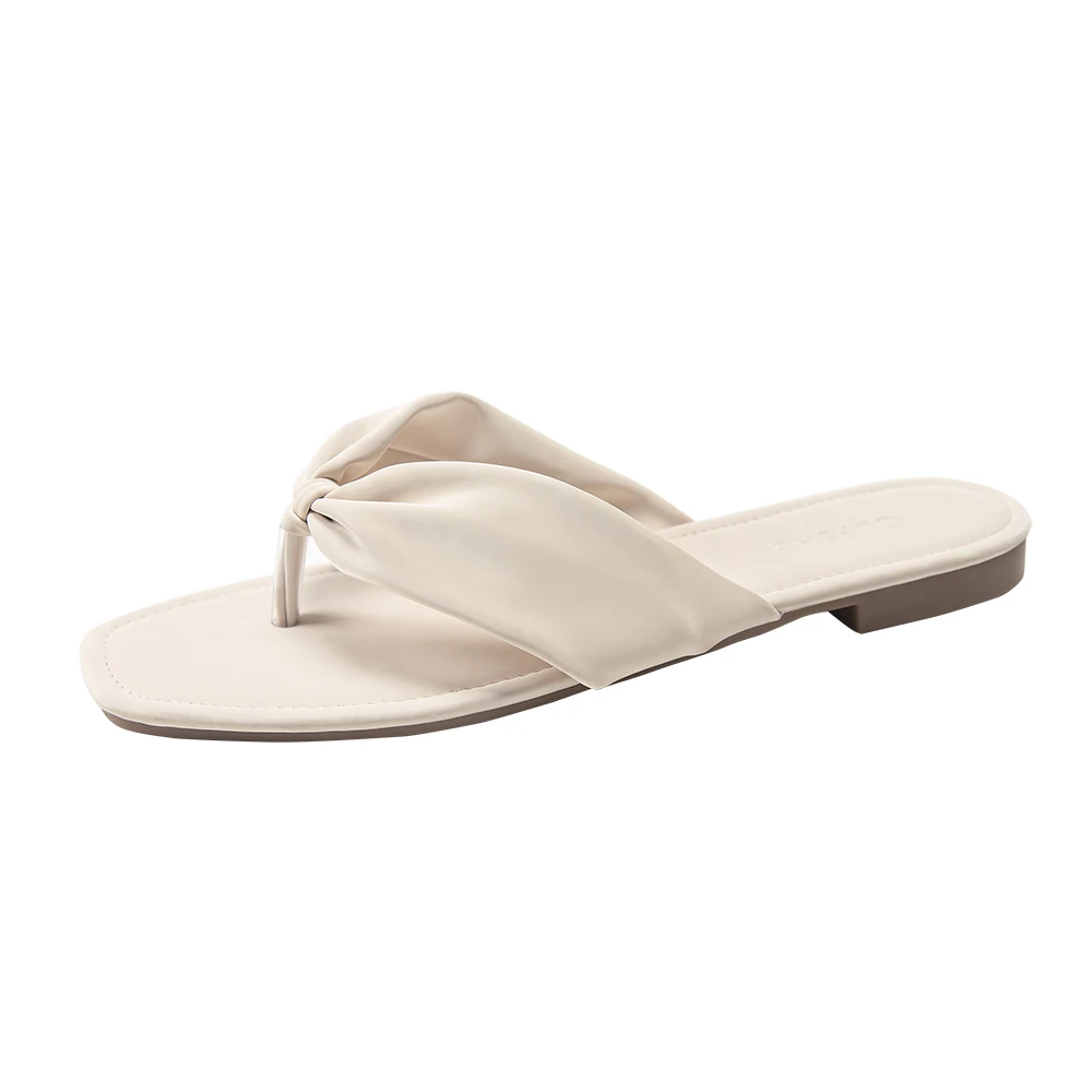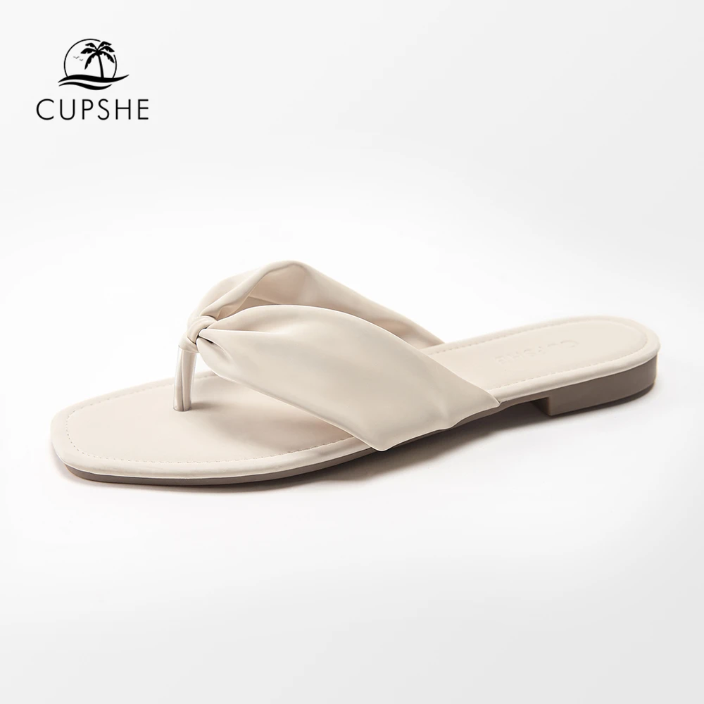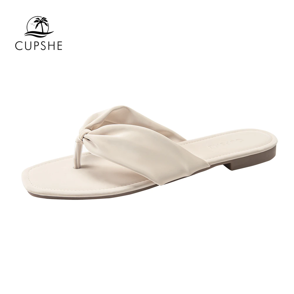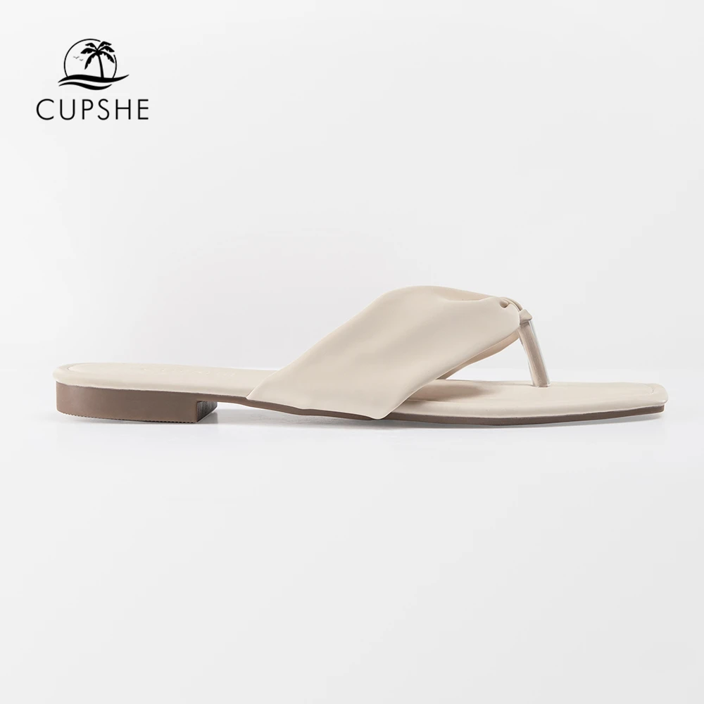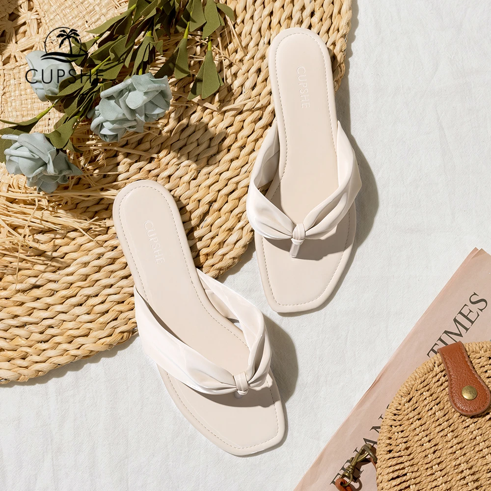 CUPSHEкремовые женские Вьетнамки с рюшами; Коллекция 2021 года; Летние пляжные вьетнамки с открытым носком на низком каблуке; Мягкие повседневные сандалии