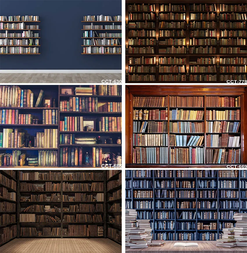 Фон для фотосъемки с изображением старых книжных полок библиотеки детских портретов в стиле ретро