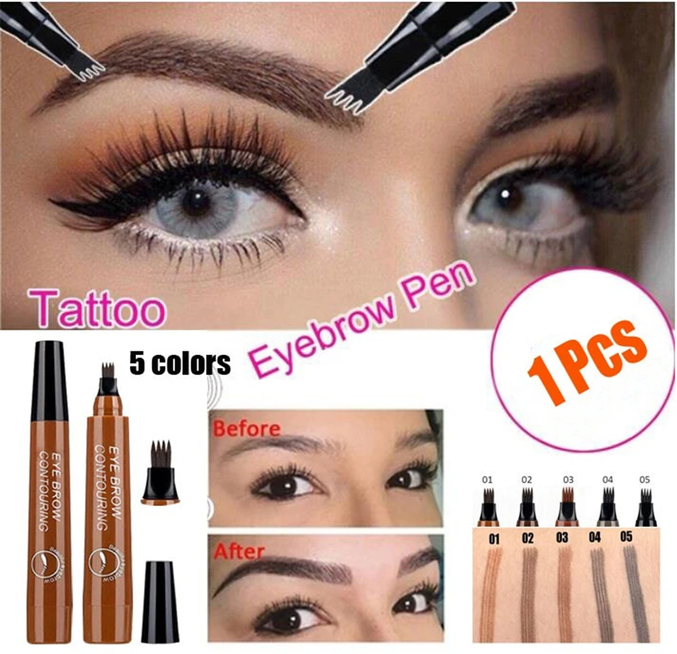 Карандаш для бровей, 5 цветов, долговечный, натуральный, темно-коричневый, жидкий карандаш для бровей, водостойкий, 4 вилки, кончик для бровей, карандаш для татуировки, косметика