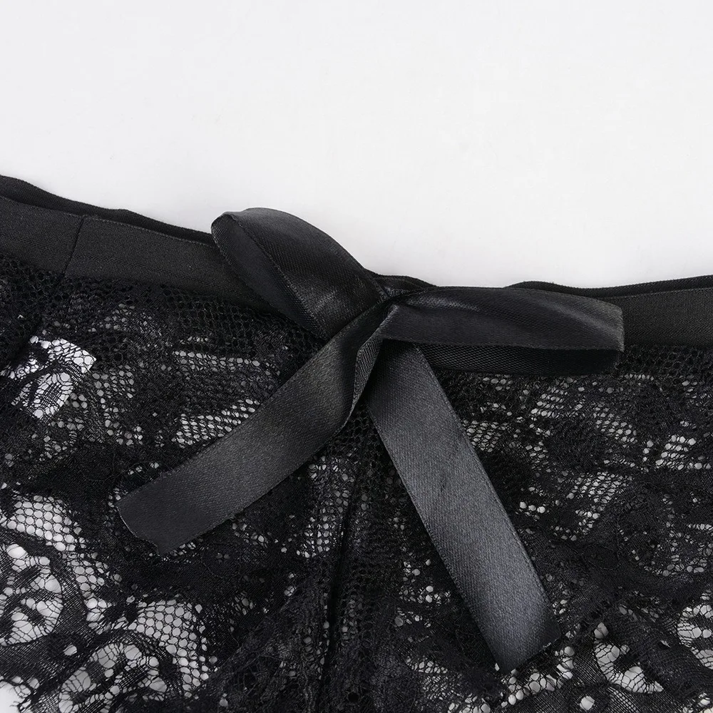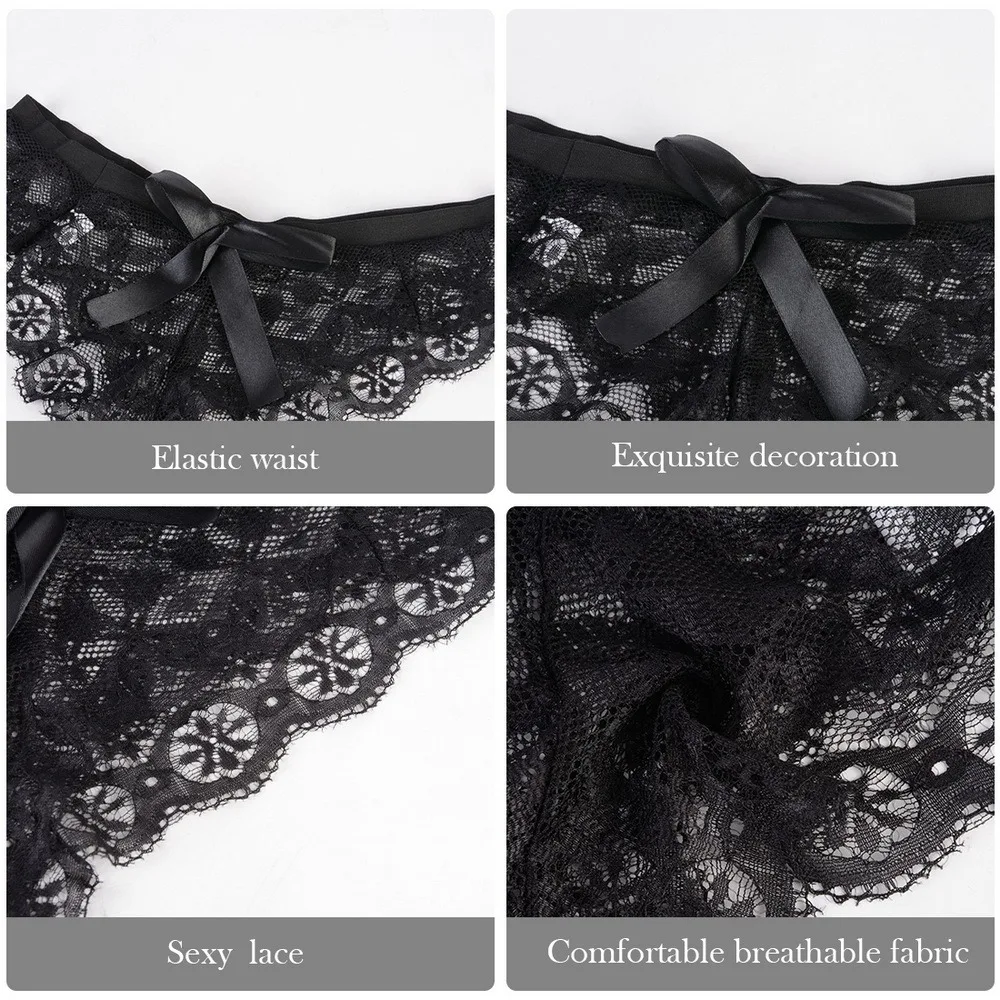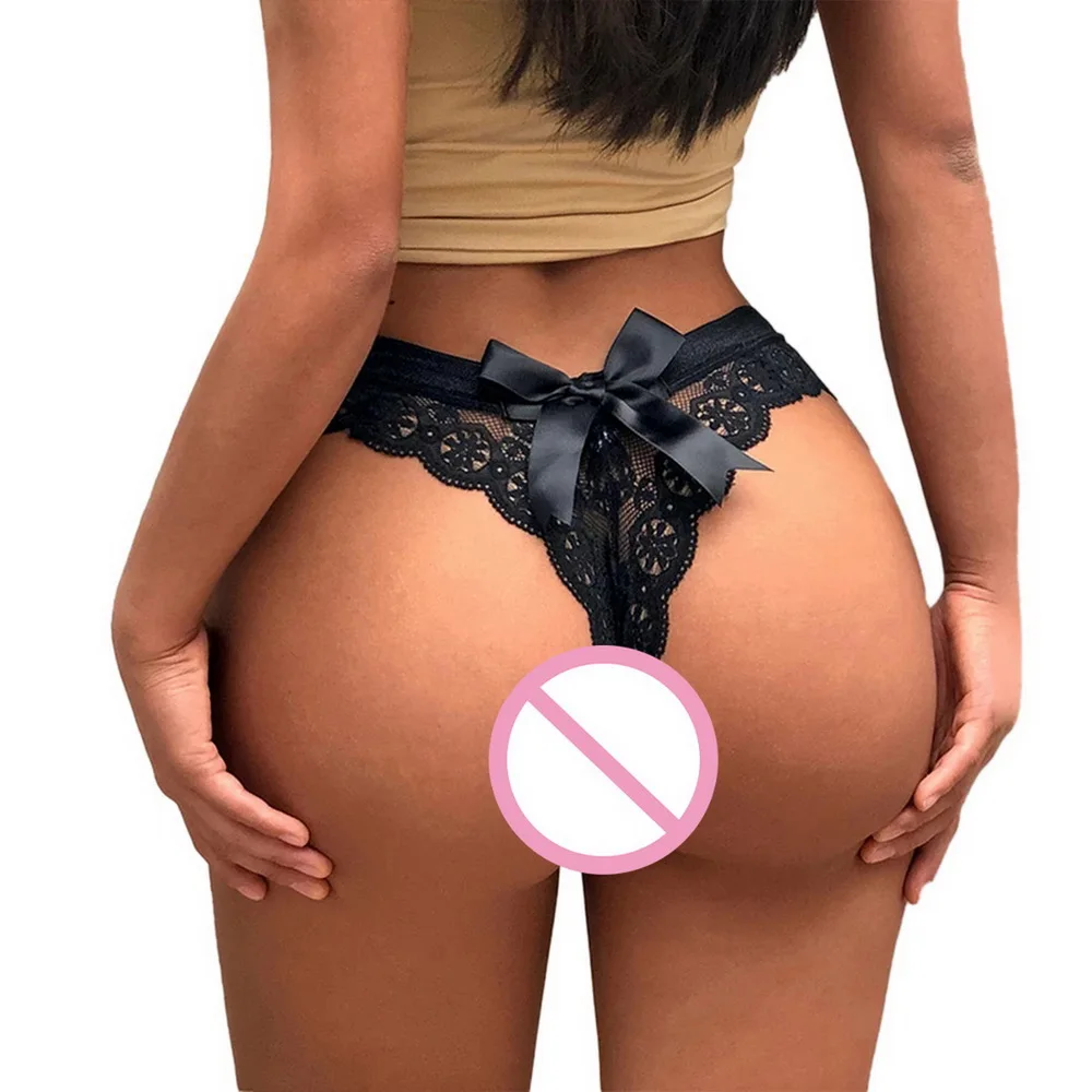 Сексуальные женские кружевные трусики искушение с заниженной талией полые галстук-бабочка, прозрачные трусики стринги размера плюс дышащие нижнее белье
