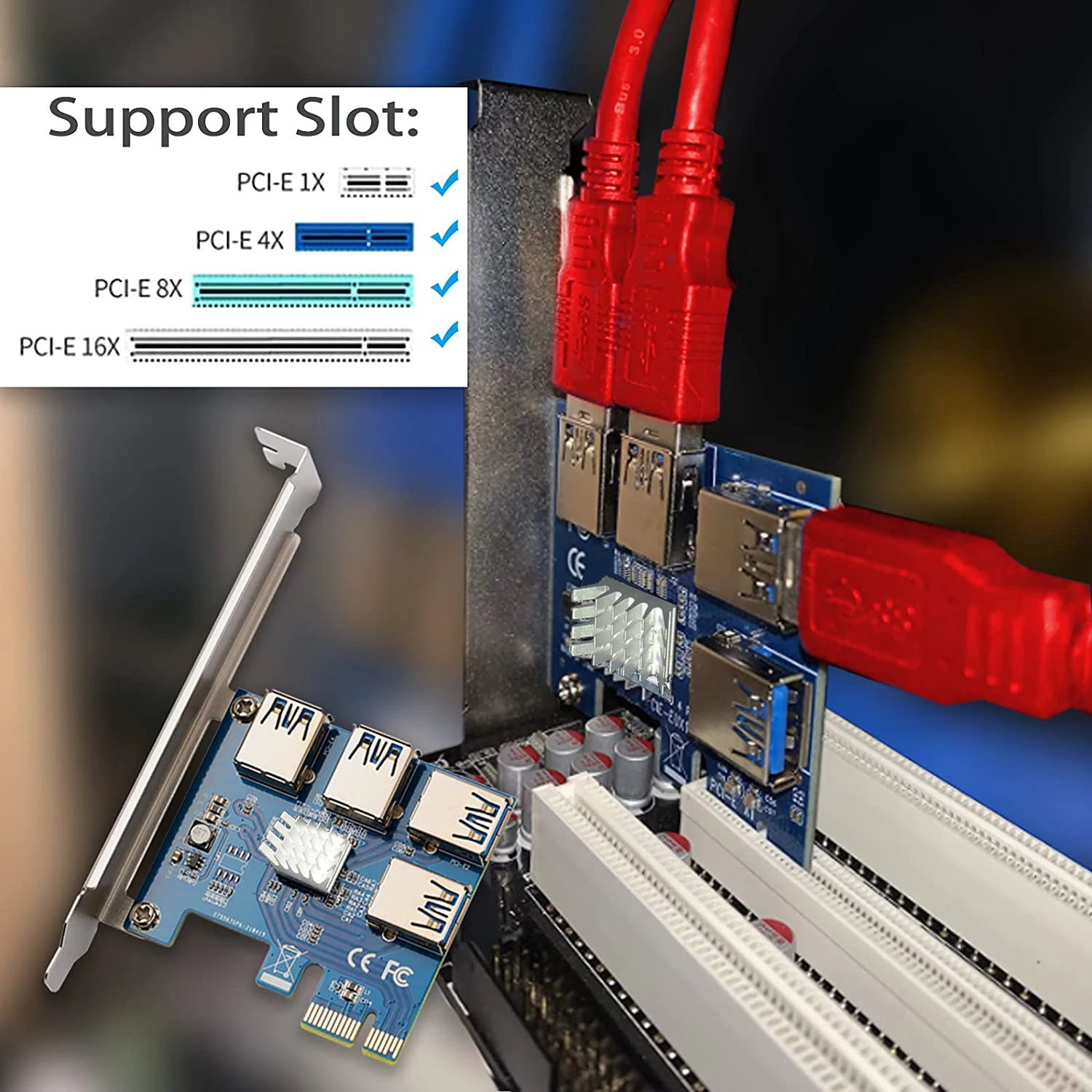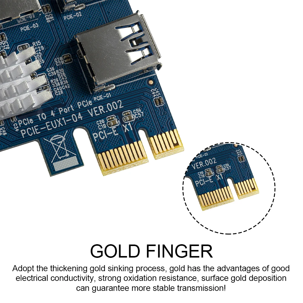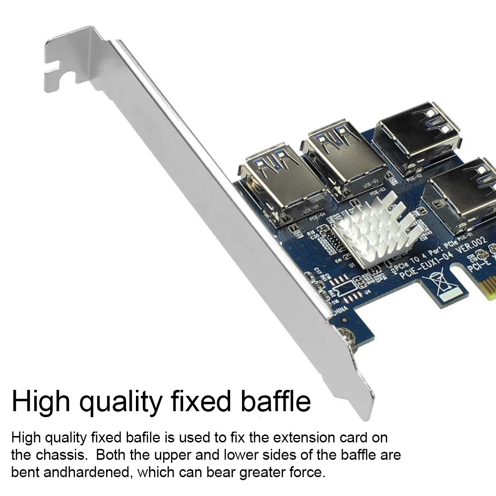 Мы отметим очень низкие значенияЧтобы избежать дополнительных расходов для buyersTXT, пожалуйста, будьте уверены, чтобы купитьНазвание продукта:Плата расширения PCI-E one-to-fourМодель: PCE4USB-A01Интерфейс шины: PCI-E X1 (совместим с X4, X8, X16/графическим интерфейсом) количество интерфейсов: интерфейс PCIE_USB * 4Серебристый золотой USB интерфейс поставляется случайным образомРазмер изделия: 120 мм * 55 мм 75 ммРазмер упаковки: 125 мм * 105мм 25 ммВес изделия: 70 гПоддержка системы: DOS, LINUX, WINXP, WIN7, WIN8, WIN10 и т. Д.Особенности1. Эффективно решить недостаточный интерфейс PCI-E материнской платы, и один интерфейс может быть расширен до 4;2. Благодаря дизайну подключаемой платы она может быть непосредственно подключена к интерфейсу материнской платы без удлинительного кабеля и может быть закреплена на шасси, стабильность и надежность значительно улучшаются!3. Основная плата управления использует интерфейс PCI-E для прямого источника питания, внешний шнур питания не требуется, так что питание основной платы управления не мешает внешнему миру, и стабильность выше!4. Уменьшить количество адаптеров и адаптеров. Один провод идет непосредственно к интерфейсу, эффективно уменьшая помехи интерфейса и потерю провода, обеспечивая надежность данных и повышая эффективность работы!5. Разъем USB позолочен, что уменьшает помехи между интерфейсами и повышает целостность данных.ПСписок взломов1 * Адаптер PCI-E 1x4ПСписок взломовКарта 4 шт. Riser 009S1 * Адаптер PCI-E 1x44 * PCI-E 16X подъемная плата4 * PCI-E 1X адаптер карты4 * SATA 15-pin до 6-pin кабель питания4 * USB 3,0 кабельМеры предосторожности:1. Поскольку WINDOWS ограничивает количество графических карт, только 8 карт могут быть признаны под WIN10, и только 6 графических карт могут быть признаны под WIN7, и должен использоваться модифицированный драйвер видеокарты. Попробуйте использовать видеокарту того же типа на материнской плате.