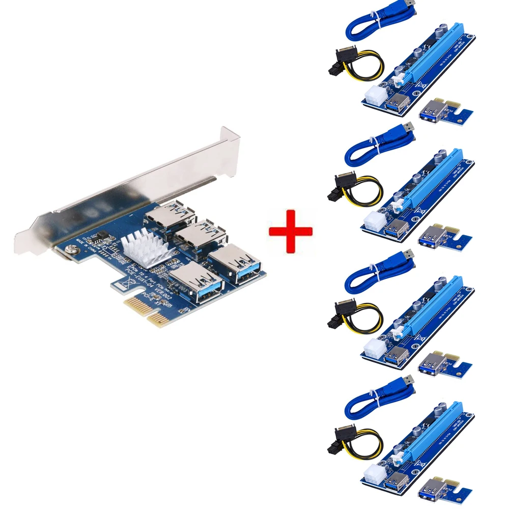 PCI-E к PCI-E адаптеру 1 поворот 4 PCI-Express слот 1x до 16x USB 3,0 специальная переходная карта для майнинга PCIe конвертер для майнинга BTC