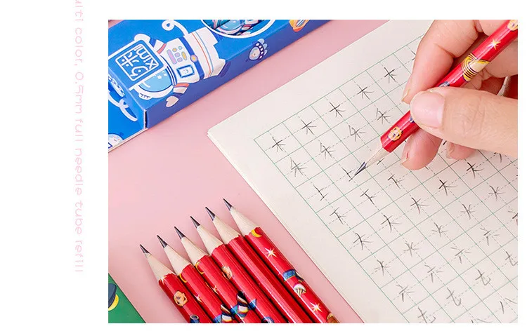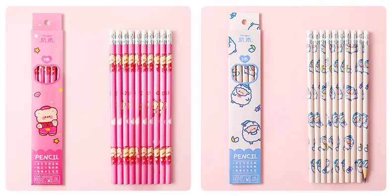 Деревянные карандаши в 10 упаковках с ластиком, карандаш HB, мультяшная планета, ручка для письма, милая ученическая ручка, кавайные школьные принадлежности, подарки, ручка, приз