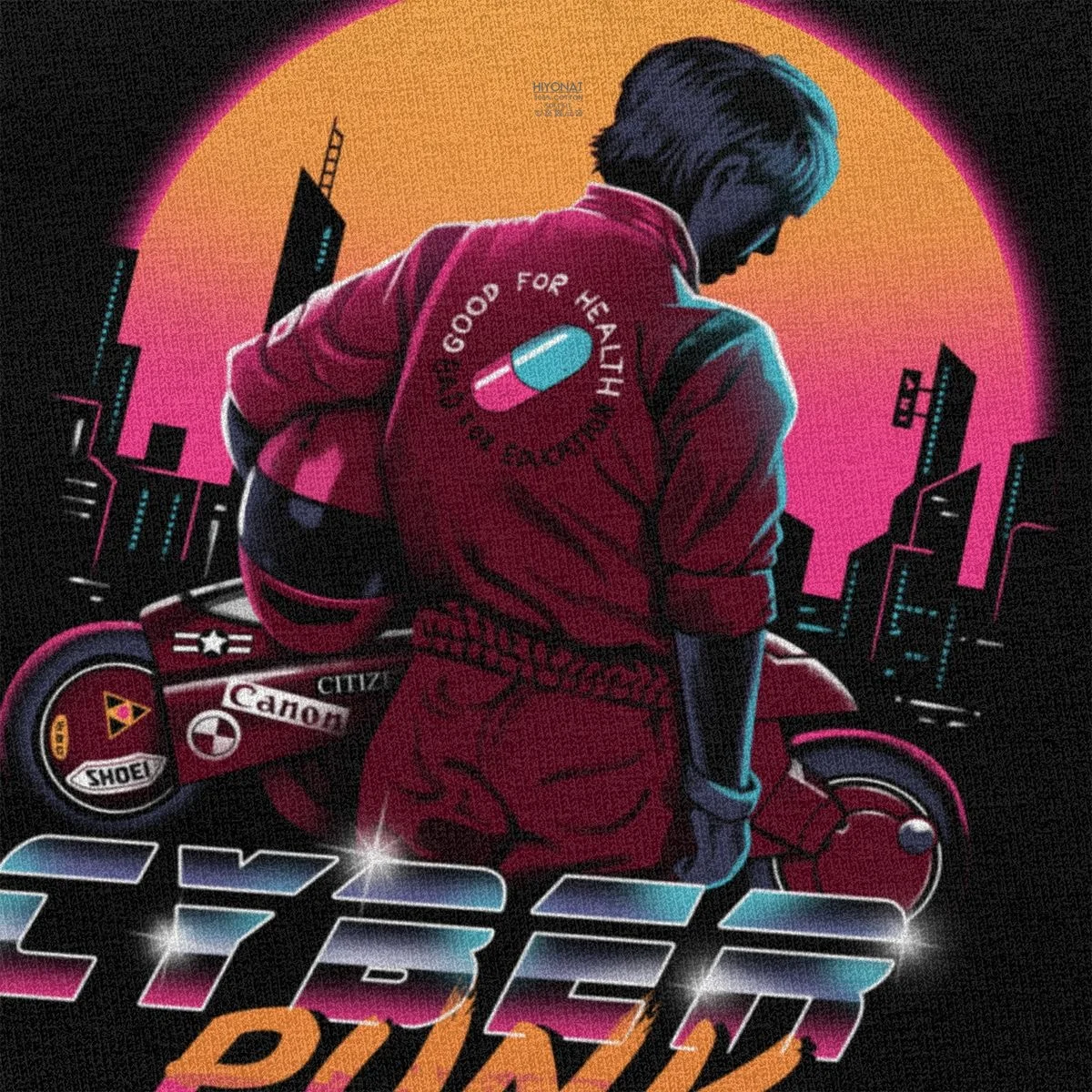Мужская футболка с принтом Аниме Манга Акира Нео Токио, футболка с коротким рукавом, Shotaro Kaneda, футболка с графическим принтом Synthwave, Предварительно сжатая хлопковая Футболка с принтом волн
