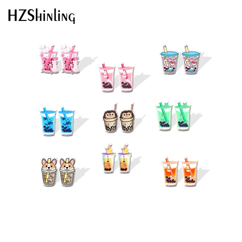 Новинка 2021, серьги-гвоздики в виде чая Boba, летний напиток, искусственная эпоксидная смола, для девушек