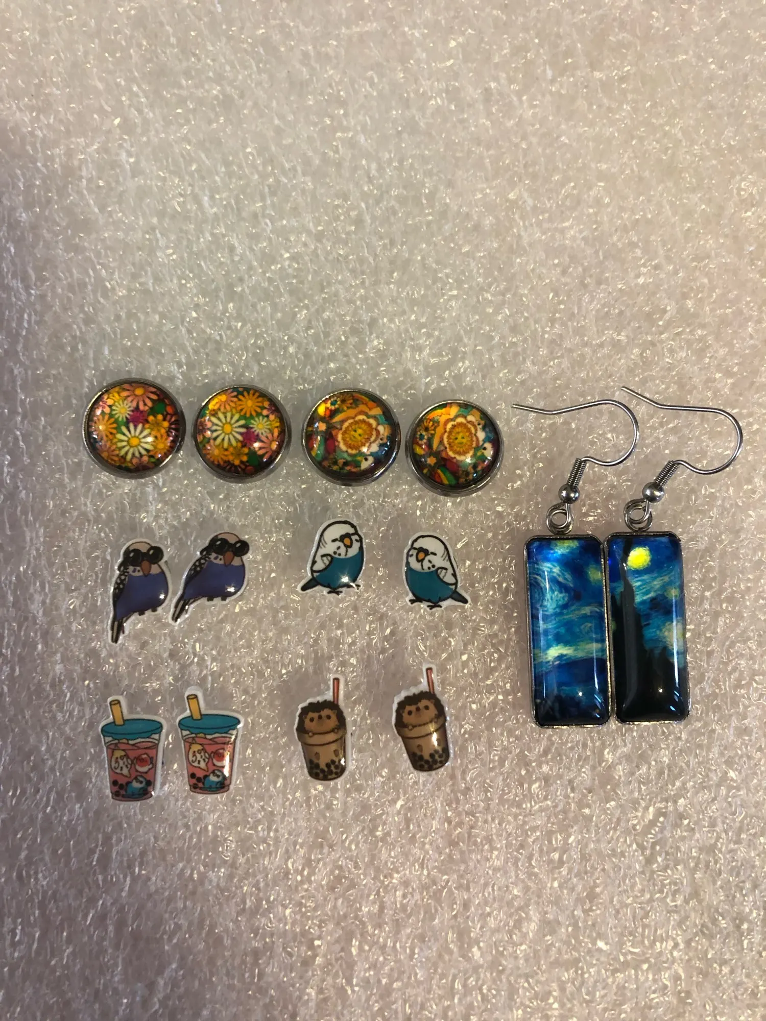 Акриловые серьги-гвоздики с изображением милых десертов, молочных к...
