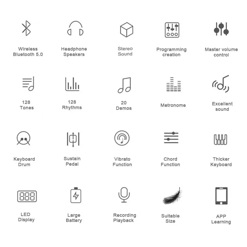 Беспроводной bluetooth совместимым 5,0 передачи, совместимость со многими популярные приложения, как Cubase, POPMusic, Nuendo и т. д.;