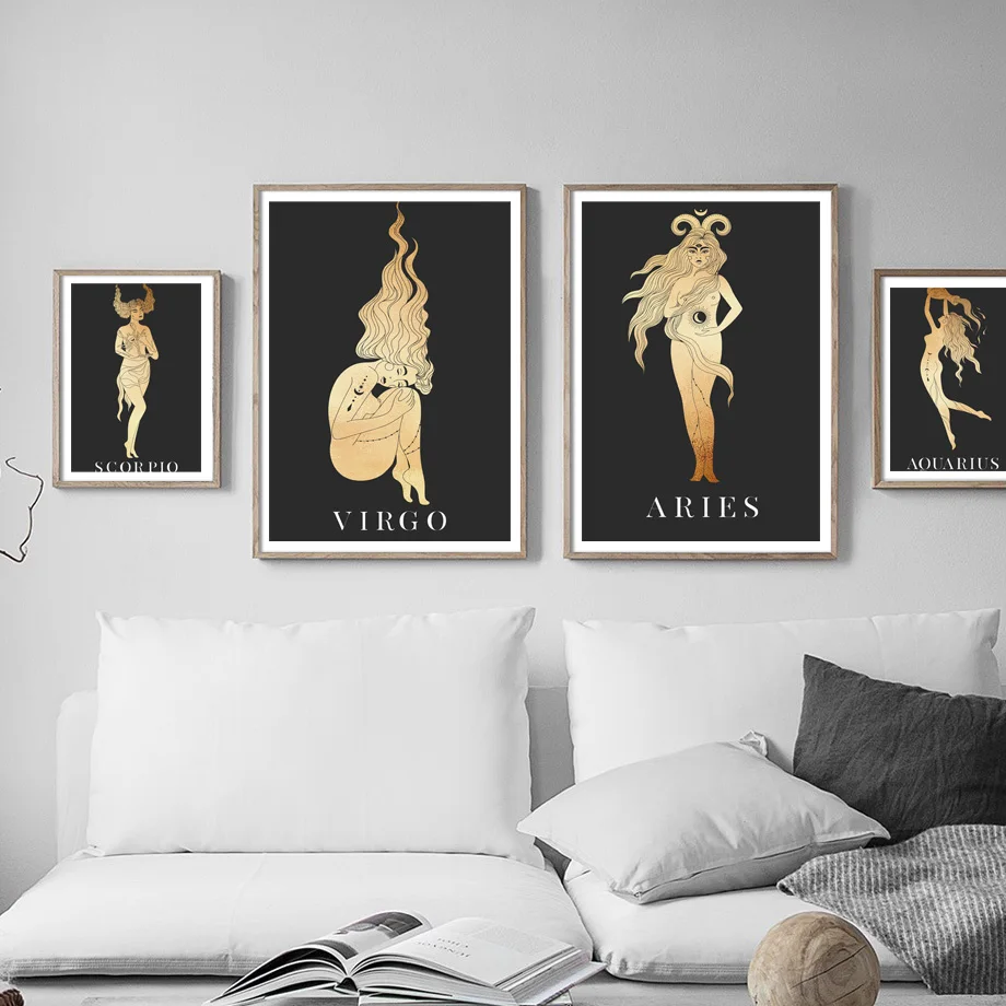 Скандинавский плакат, Зодиак, Таурус, дева, близнецы, звезда, знак, настенный художественный принт, холст, живопись, бохо, Декор, картинки для гостиной