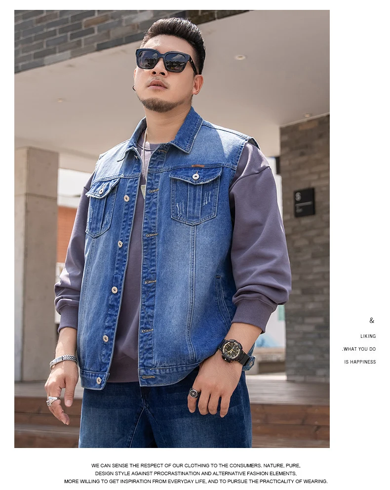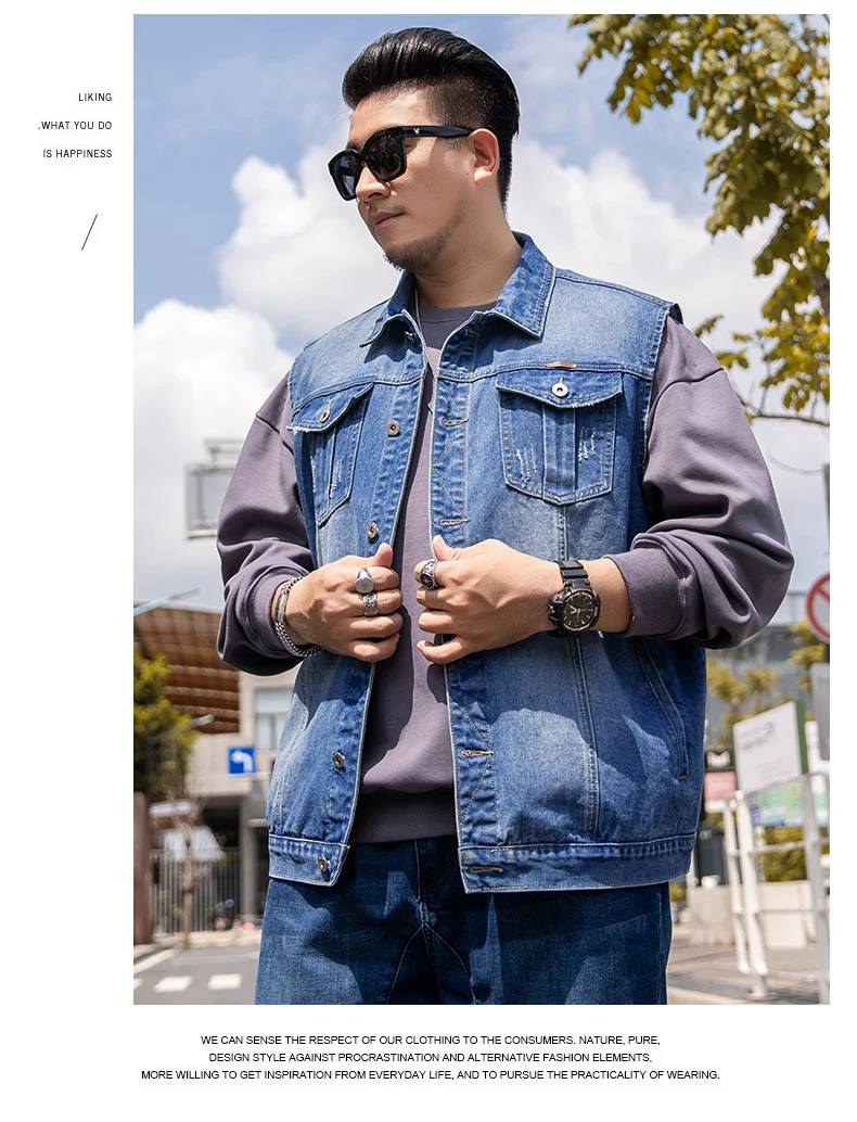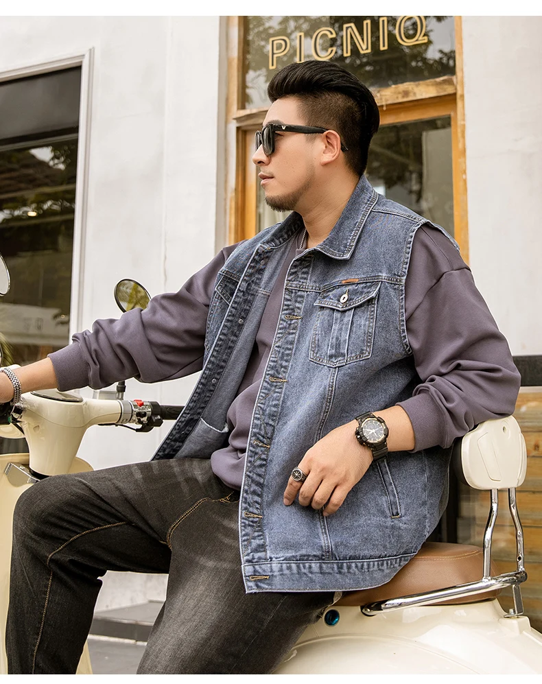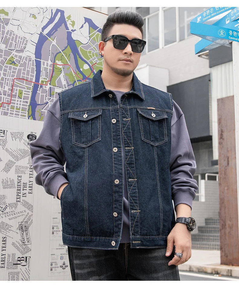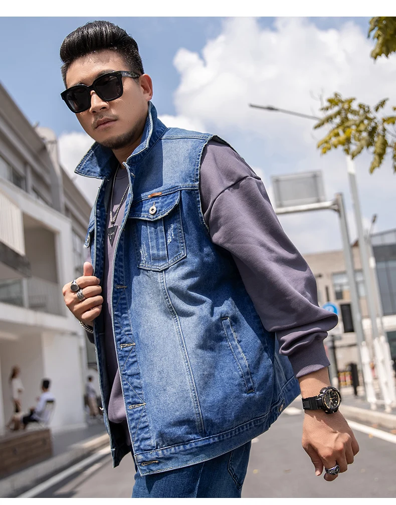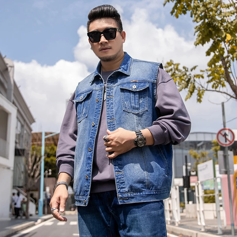 7XL 6XL 5XL размера плюс мужская жилетка из денима классическое Стиль с модными карманами царапин конструкция большого размера на весну и на осень, одежда для прогулок
