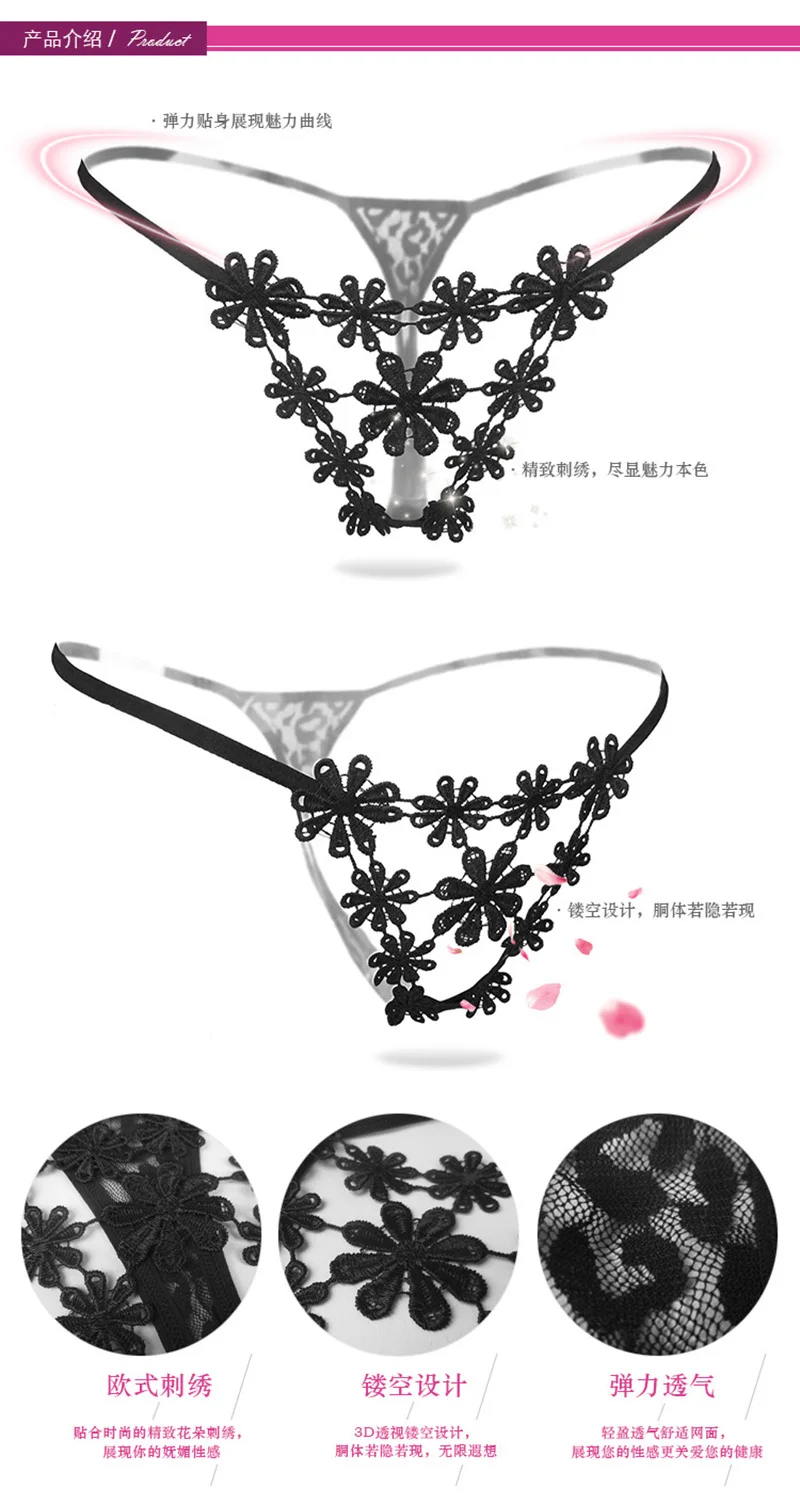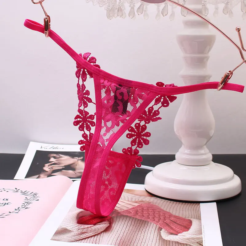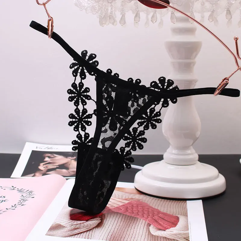 Стринги женские кружевные, с вышивкой, с низкой талией