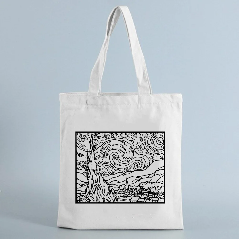 Сумка для покупок с графическим рисунком Ван Гога, брезентовые сумки-тоуты, складная сумка для покупок, школьные винтажные сумки на ремне в эстетике