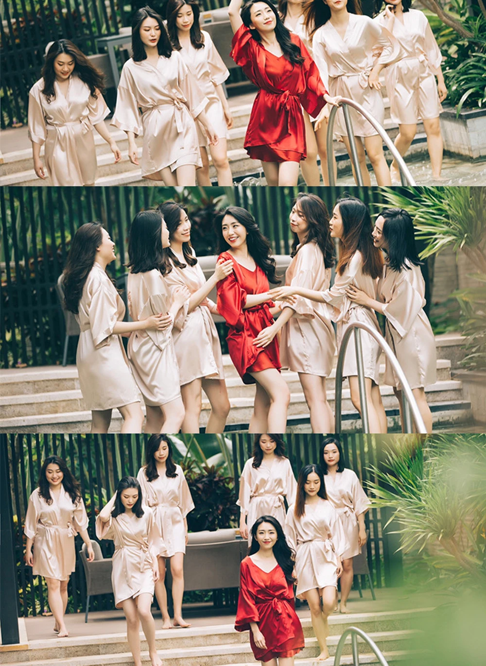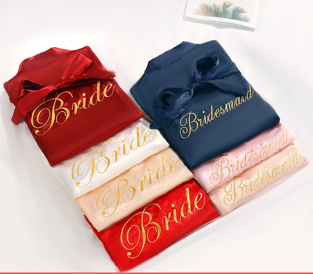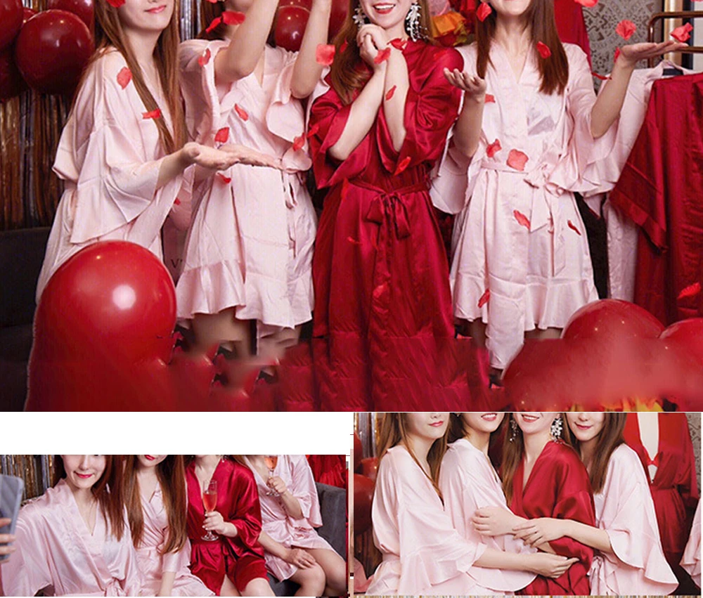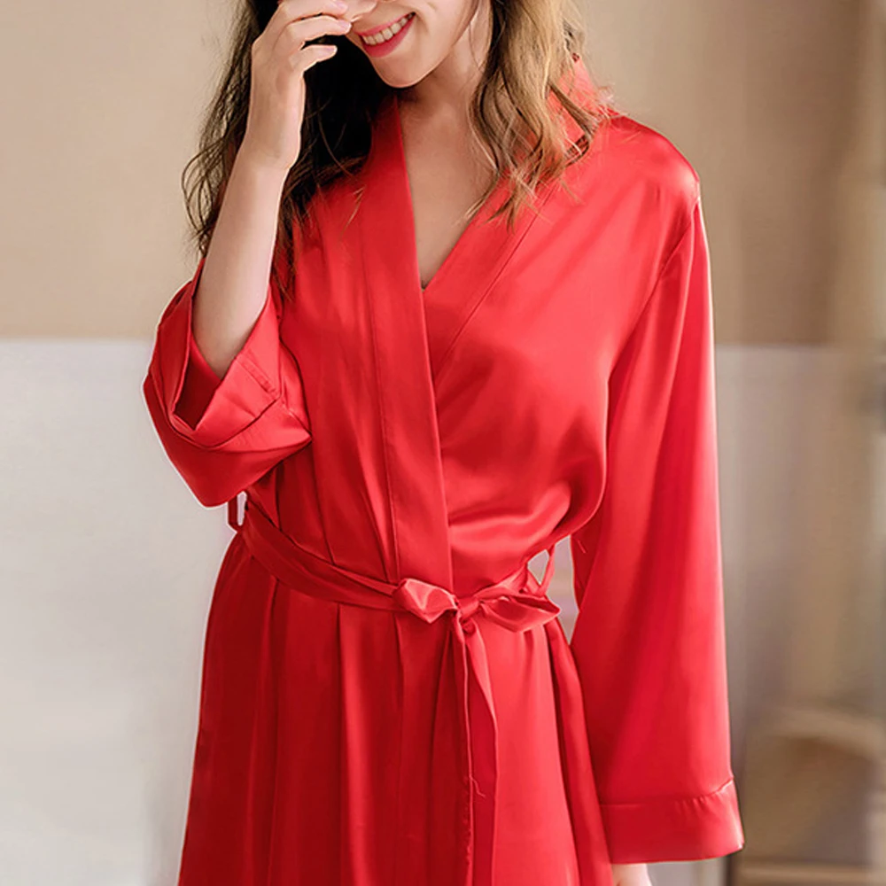 Женский Атласный халат, кимоно с вышивкой и длинным рукавом, ночная рубашка-кардиган
