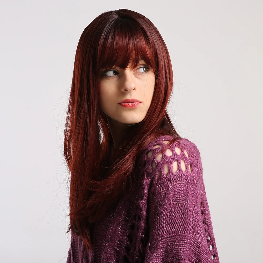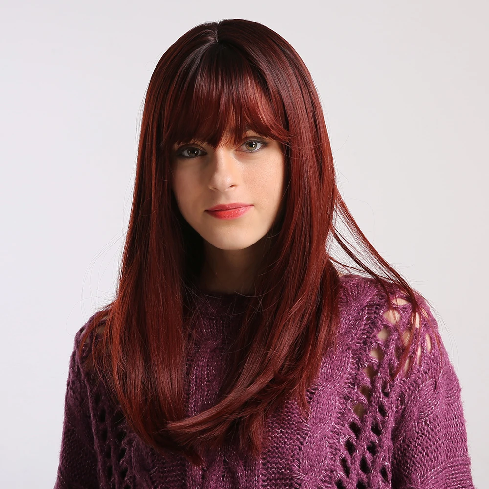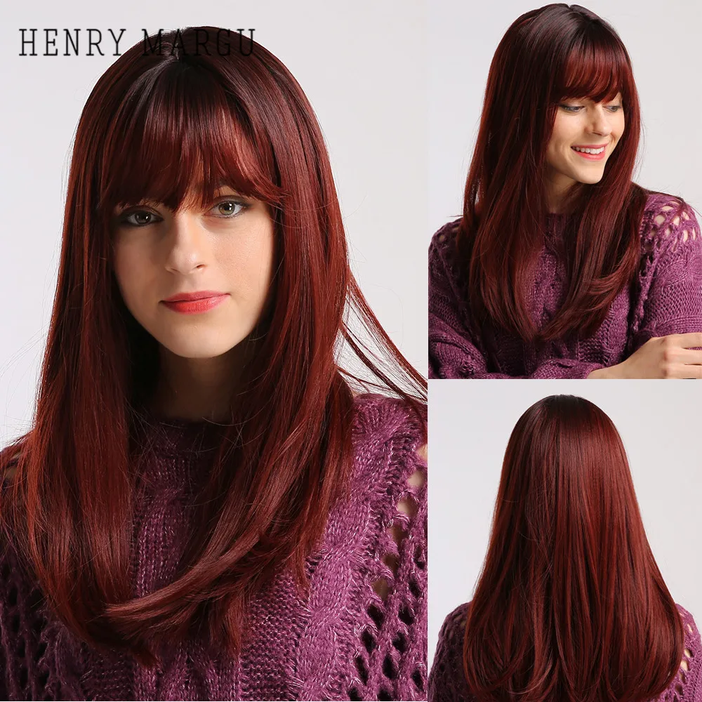 Женский длинный синтетический парик с эффектом омбре henmargu, бордовый парик с прямыми волосами, термостойкий натуральный парик для косплея