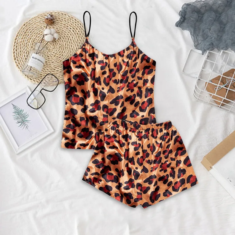 Женские пижамные комплекты, пикантный Атласный топ с леопардовым пр...