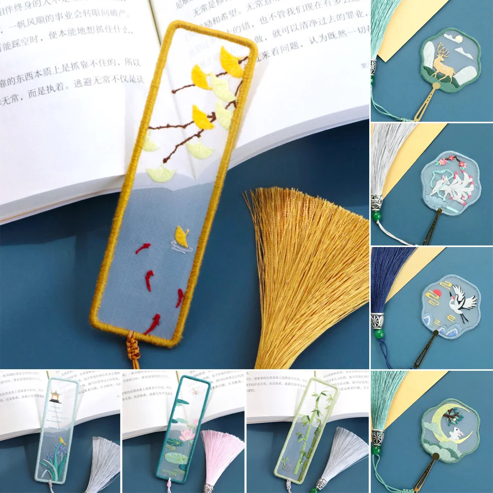 Китайская Ретро веерообразная кисточка, закладка для вышивки кресто...
