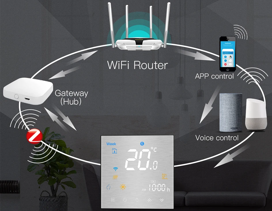 Металлический термостат с матовой панельюИнтеллектуальное управление устройством после подключения его к большинству ZigBee hub, Tuya ZigBee hub требуется для его гораздо большей совместимости с устройствами zigbee, чем другие концентраторы