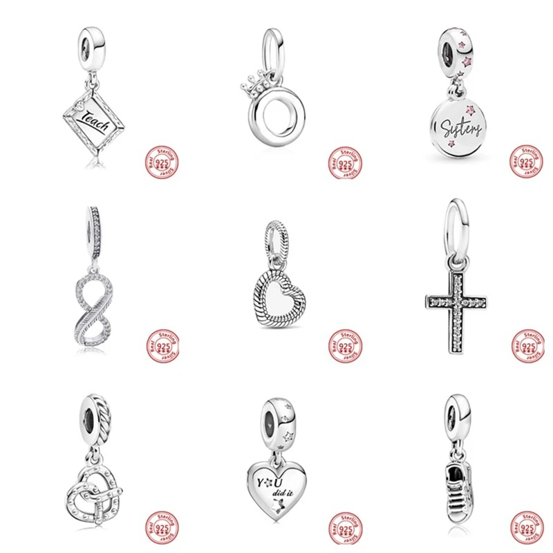 Настоящие 925 Серебряные полупустые друзей Корона Крест крендель с позолоченным кольцом из бисера, подходят к оригиналу Pandora, браслет для женщин, сделай сам, ювелирное изделие аксессуары