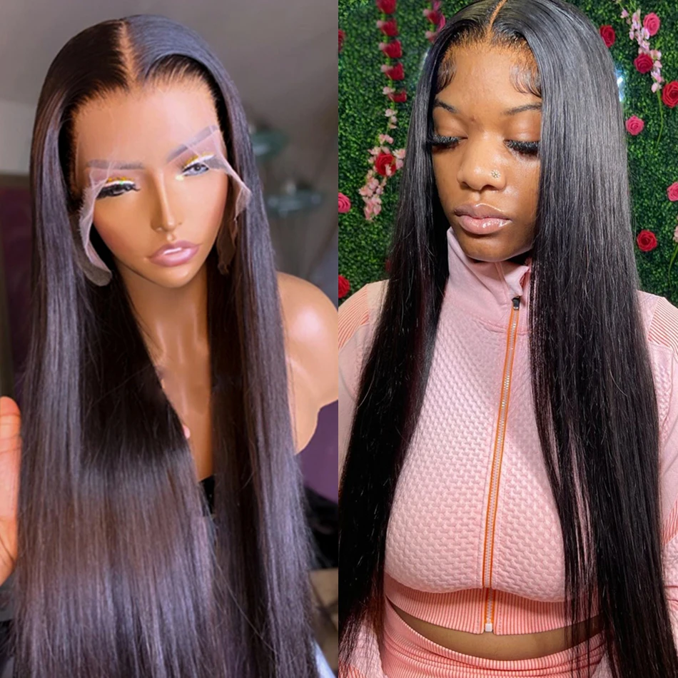 Прямые парики фронта шнурка 13x4 предварительно собранные человеческие волосы HD полный парик фронта шнурка al 40 дюймов длинный парик бразильские прозрачные парики шнурка