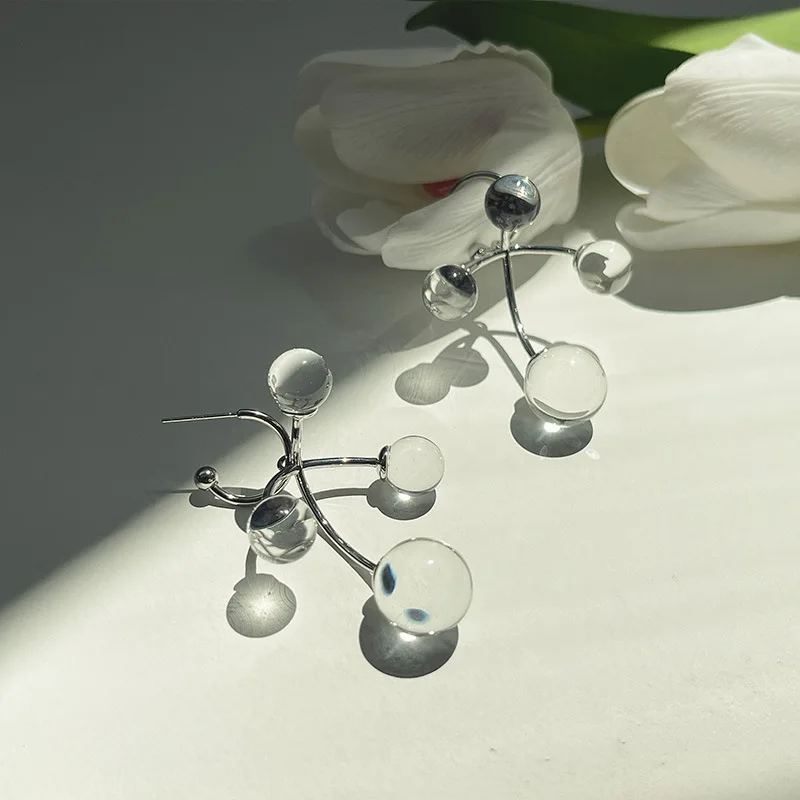 Женские серьги-подвески, с прозрачными бусинами, геометрической формы