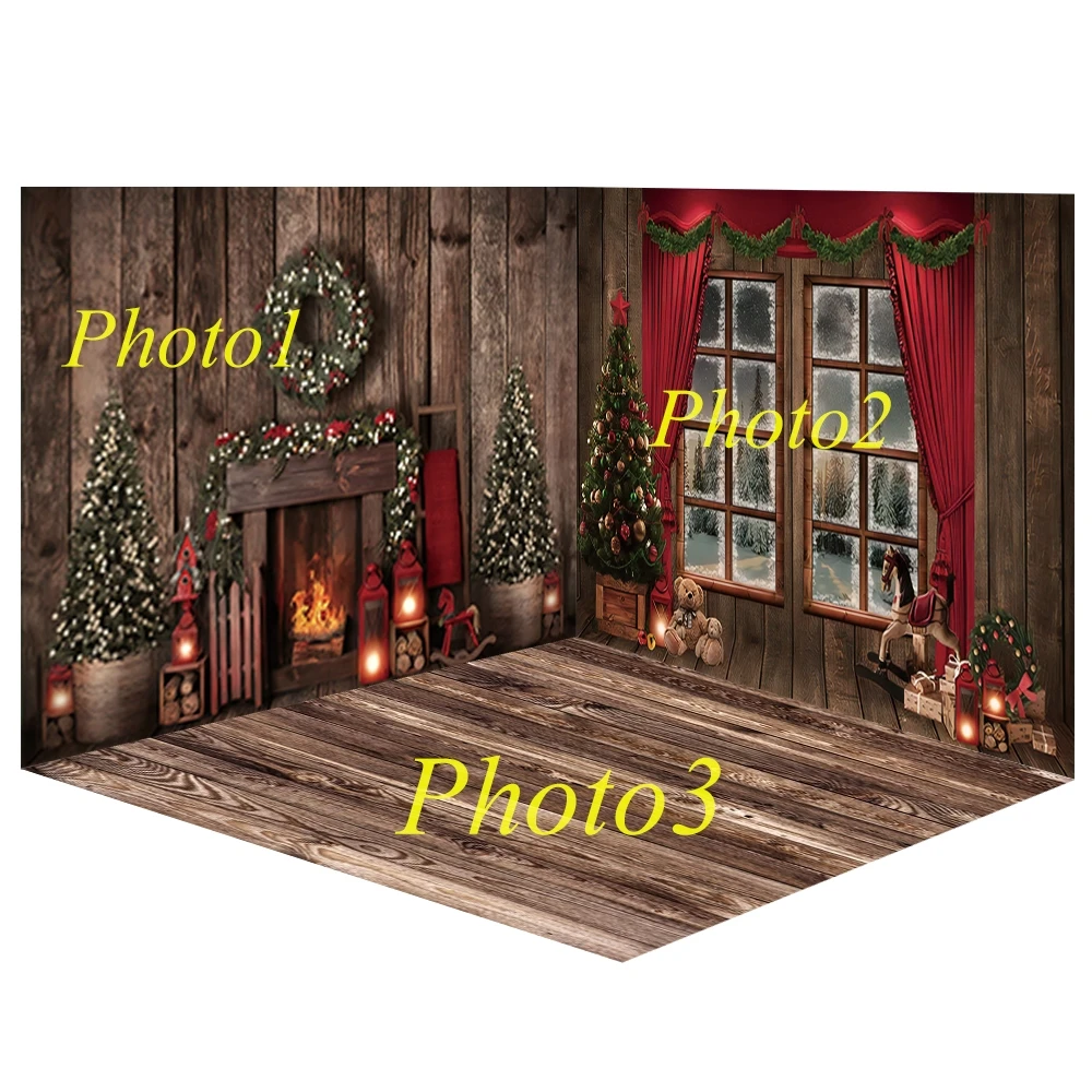 Рождественские фоны для фотографии деревянная стена камин с венком ...