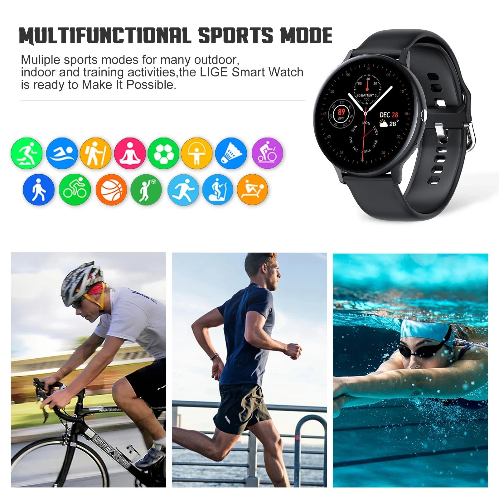 Смарт-часы LIGE мужские водонепроницаемые (IP68) с поддержкой Bluetooth