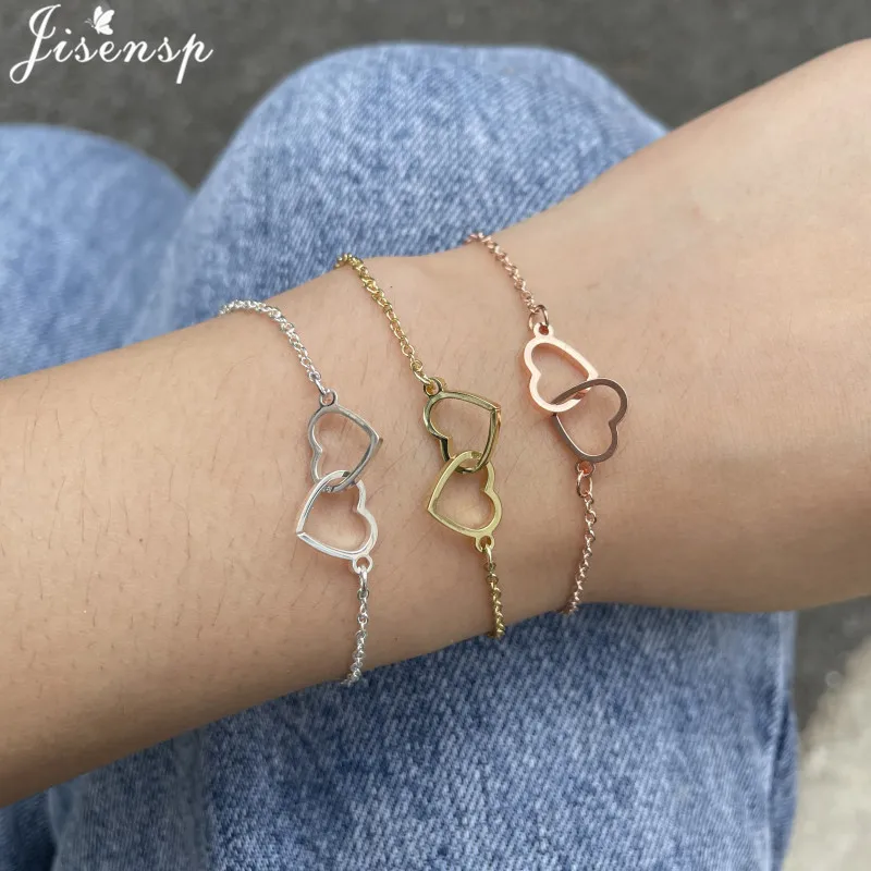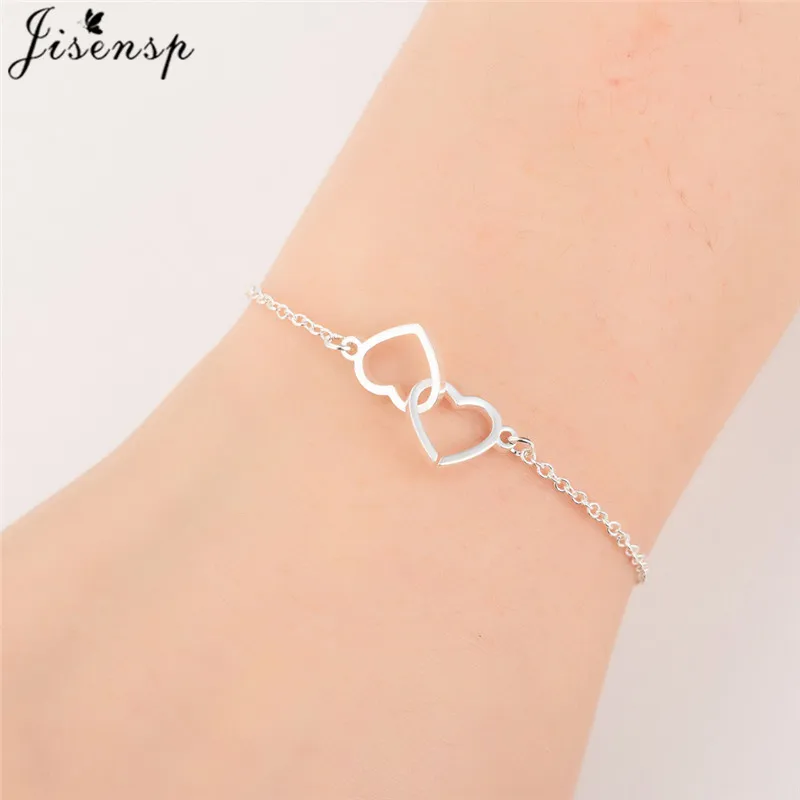 Двойное сердце браслет с подвесками ручная работа ювелирные изделия цепь из нержавеющей стали Звезда Круглый Кулон самолет регулируемые браслеты подарок подружки невесты