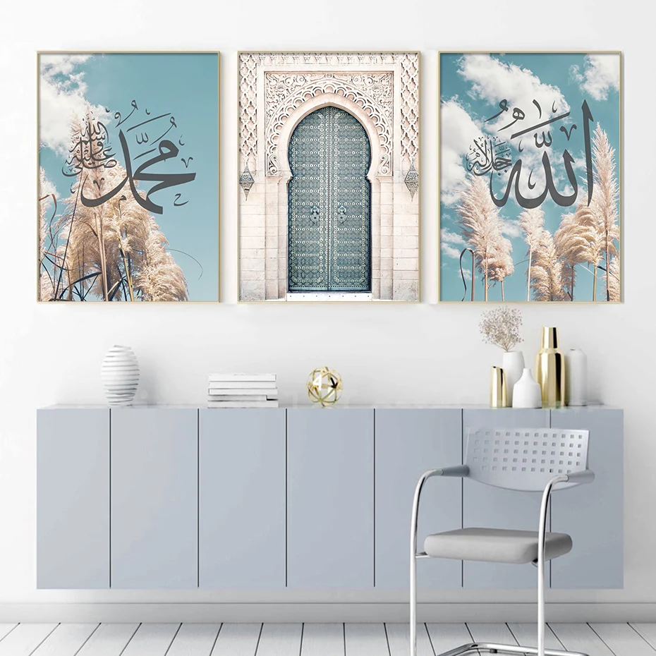 Бохо пампасы трава мусульманская стена искусство принты Мухаммад Аллах подарки Марокканская дверь холст картины плакаты гостиная домашний декор