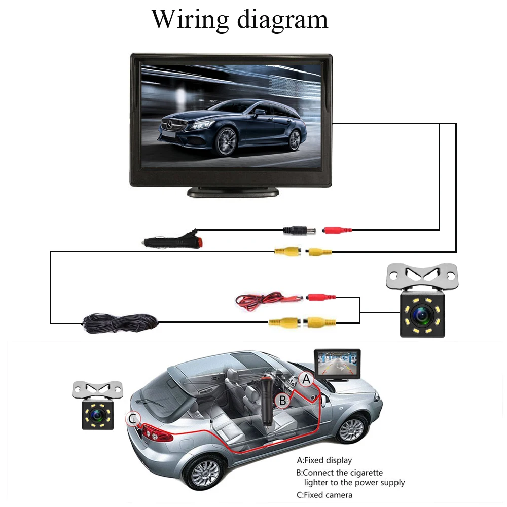 ★Новая Проводная камера перемотки: (Примечание: Рабочее напряжение: 12 В) 5 дюймов LCD TFT автомобильный монитор + Водонепроницаемая камера ночного видения