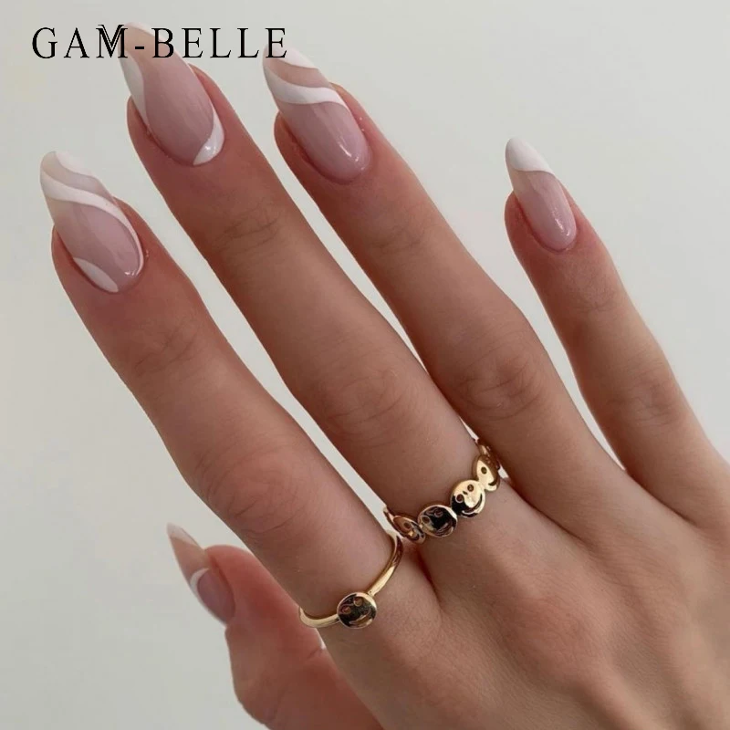 GAM-BELLE французский Обнаженная белая линия поддельные ногти Длинные овальные полное покрытие Искусственный пресс на ногти Советы DIY ногтей Декор Инструменты для маникюра