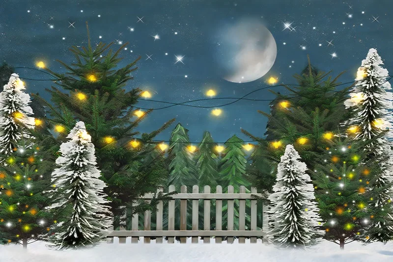 Laeacco задний фон с веселой рождественской елкой фестиваль зима пейзаж со снегом ночной луной фон для маленьких детей в стиле вечеринки в честь Дня Рождения Семья фон для фотосъемки