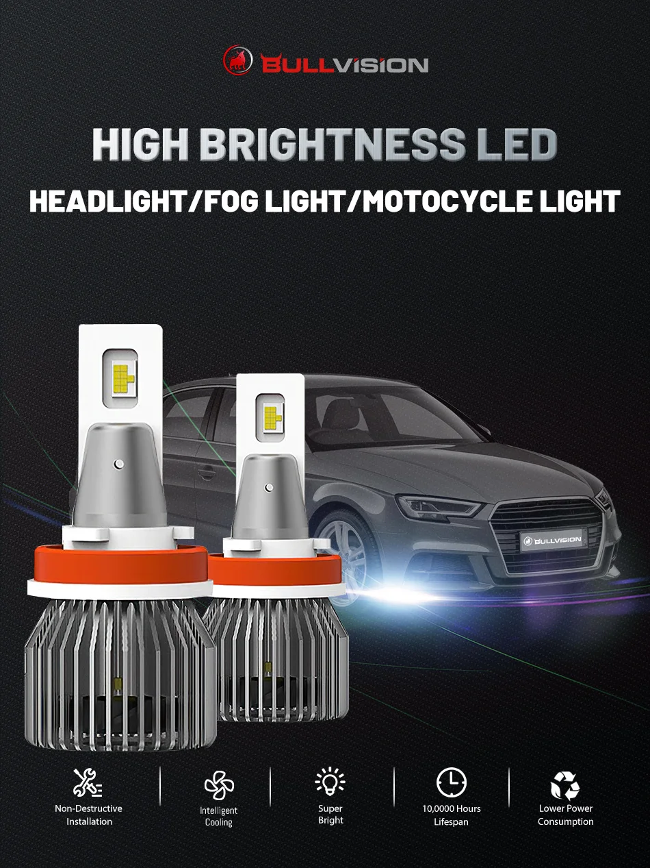 Светодиодные Автомобильные фары Bullvision H11 H7 H4 H1 H3 9005 900...