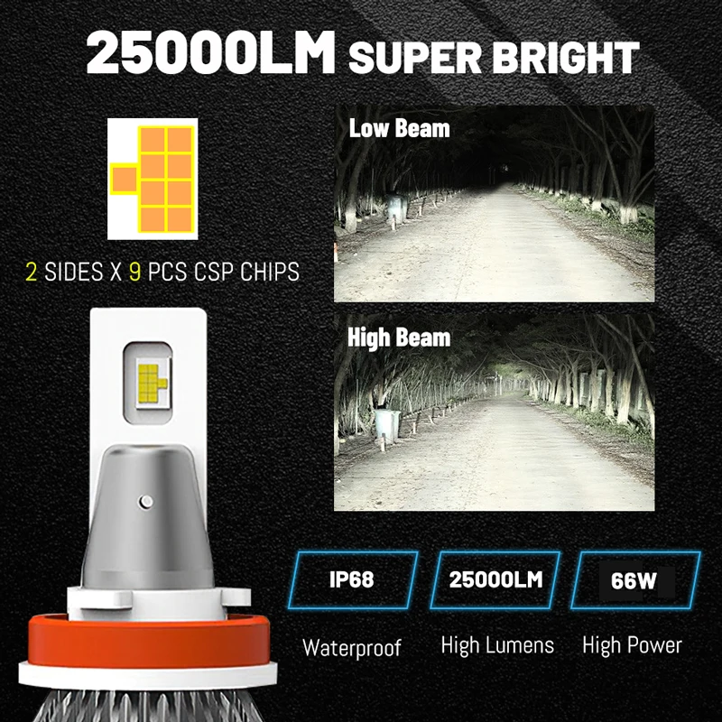 Светодиодные фары H7 20000LM H4 H11 H1 H8 H9 9005 9006 HB3 HB4 6000...