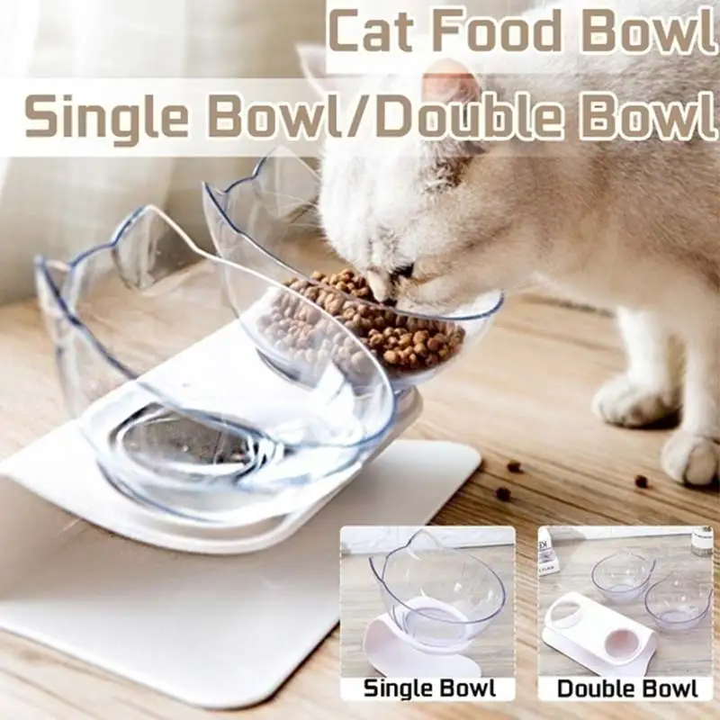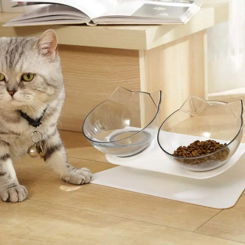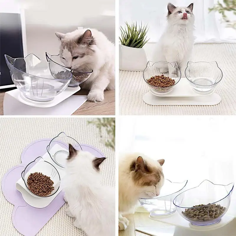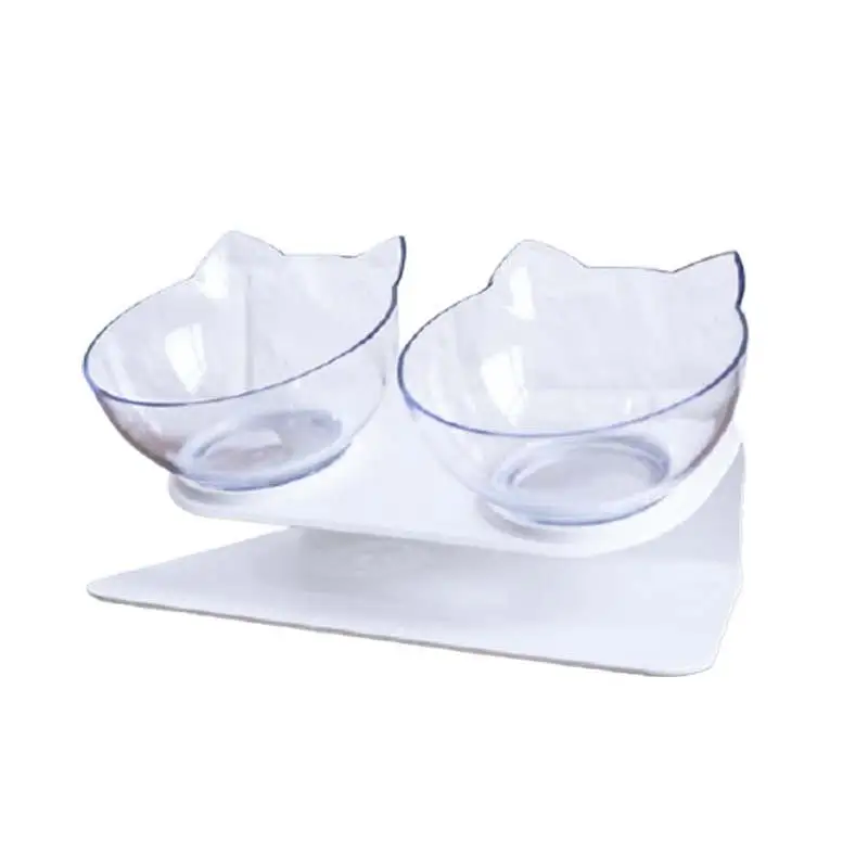 Двойная миска для кошек и котят из прозрачного материала, нескользящая прозрачная миска для шеи, товары для кошек, миска для еды с защитой