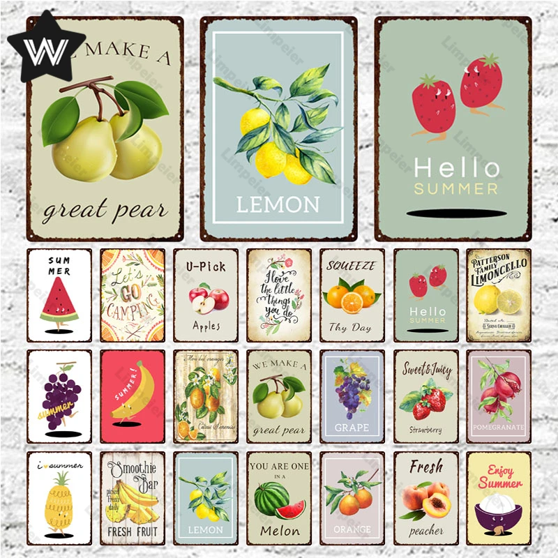 Металлические таблички с фруктами, наклейка на стену с лимоном, яблоком, бананом, стильный металлический знак, свежие фрукты, жестяной знак, Декор, фермерский рынок