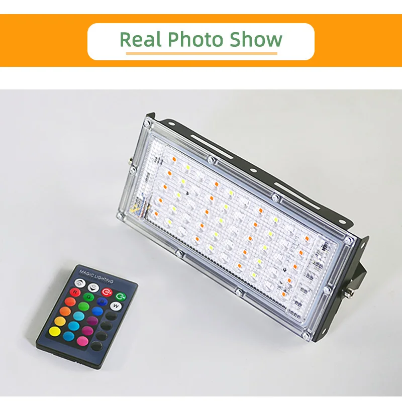 OK-B прожектор светодиодный IP65 Водонепроницаемый пульт дистанционного управления многоцветный RGB 50 Вт 100 Вт 200 Вт светодиодный прожексветильник AC 220 В точечный светодиодный светильник Открытый свет