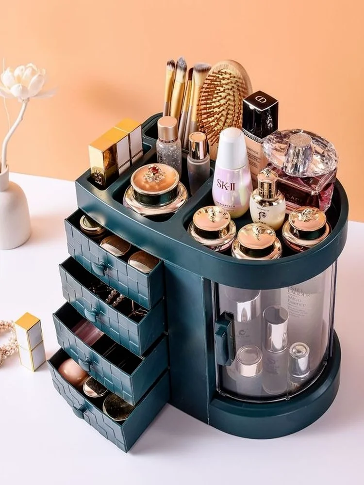 Прозрачный вращающийся Органайзер с 4 ящиками для хранения косметич...