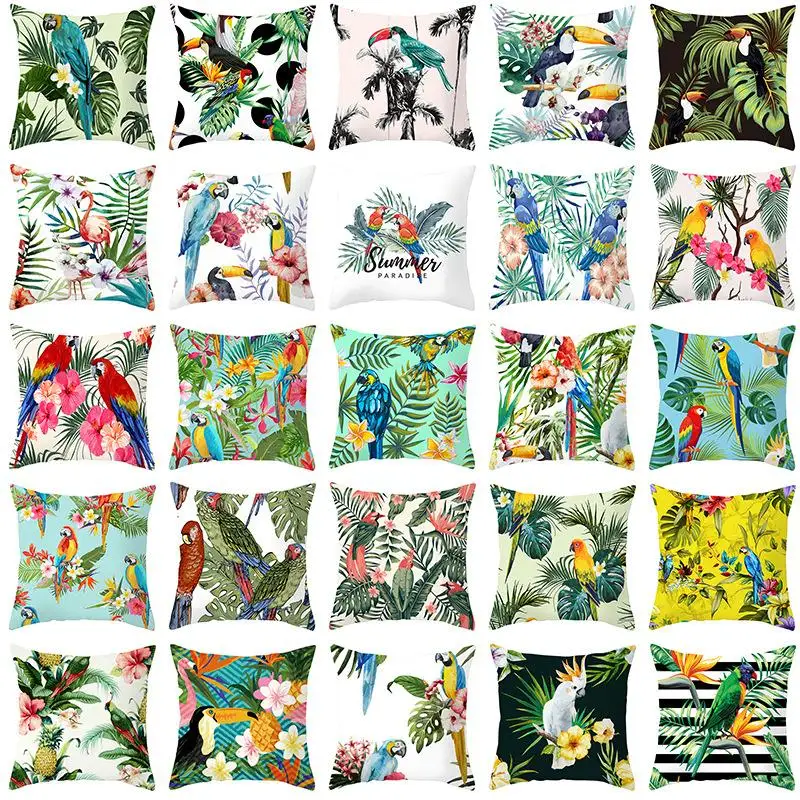 Чехол для диванной подушки, 45*45 см, с изображением тропических растений, с попугаем, подушка с птицей