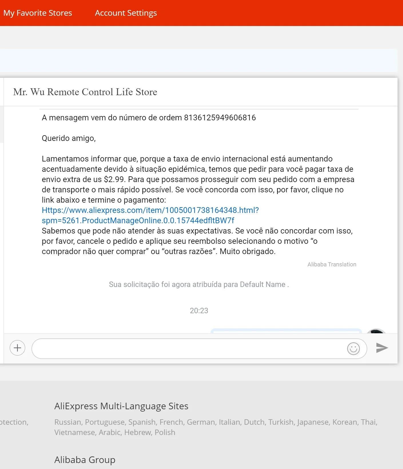 Прибыл в течение 17 дней в Рио-Гранде-ду-Сул-Бразилия, после того как продавец разместил товар. Товар в порядке, но будьте осторожны с продавцом! Он нечестен! После того, как я сделал платеж, он отправил мне сообщение с просьбой заплатить ему еще $2,99 долларов. Продавец попробовал ограбить меня! Будьте внимательны! Сообщение приведено в прилагаемых изображениях. . Прибыл в течение 17 дней в Рио-Гранде-ду-Сул-после того, как продавец отправил товар. Товар в порядке, но будьте внимательны с продавцом! Это неверно! После совершения платежа он отправил мне сообщение с запросом о том, что я заплатил более 2,99 долларов США. Продавец попробовал украсть! Будьте внимательны! В сообщении прилагаются фотографии.