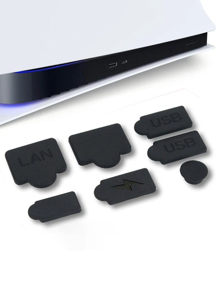 7 шт. черный силиконовый пылезащитный колпачок Вилки Набор для PS5 игровая консоль USB HDM Интерфейс крышка с защитой от пыли Пылезащитная заглушка для разъема для Запчасти