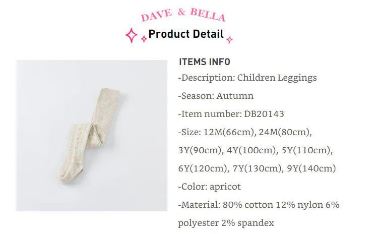 DB20143 нижнее белье в стиле бренда dave bellaкомплект, осенняя одежда для детей Одежда для маленьких девочек в стиле "Лолита" С принтом в виде надписи love леггинсы для девочек; Детские модные леггинсы для малышей
