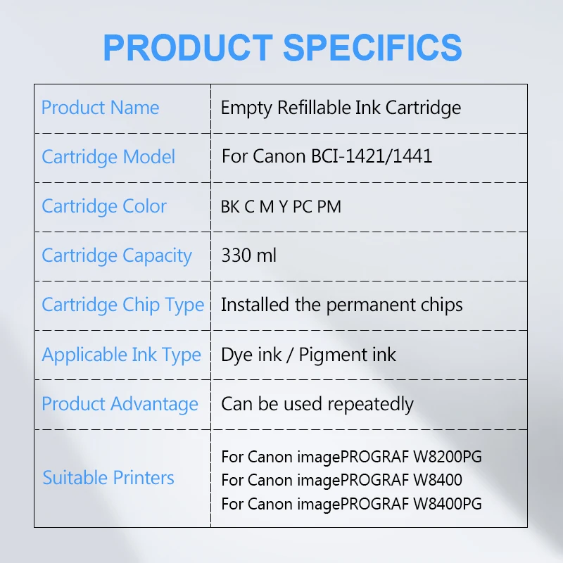 BCI-1421 BCI-1441 перезаправляемый картридж с постоянным чип для Canon imagePROGRAF W8200PG W8400 W8400PG 330ML 6 Цветакомплект