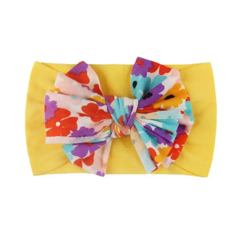 Летняя Детская повязка на голову с милым цветочным бантом, повязка на голову для маленьких девочек, эластичная повязка на голову с бантом, подарок для новорожденных, модные аксессуары для волос