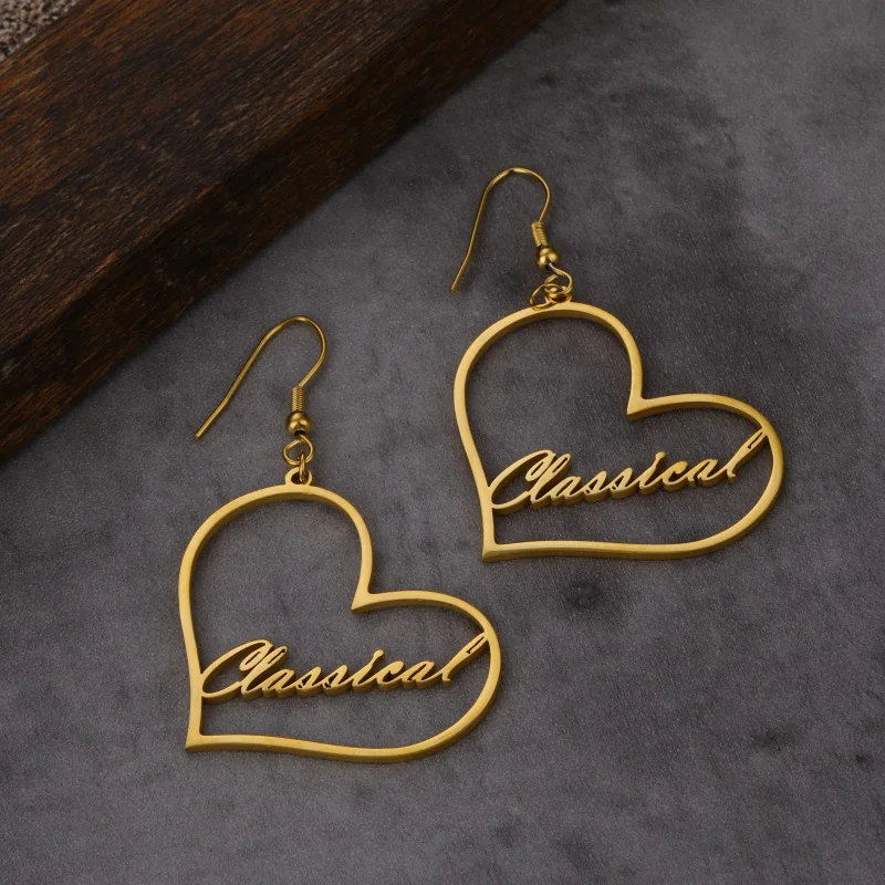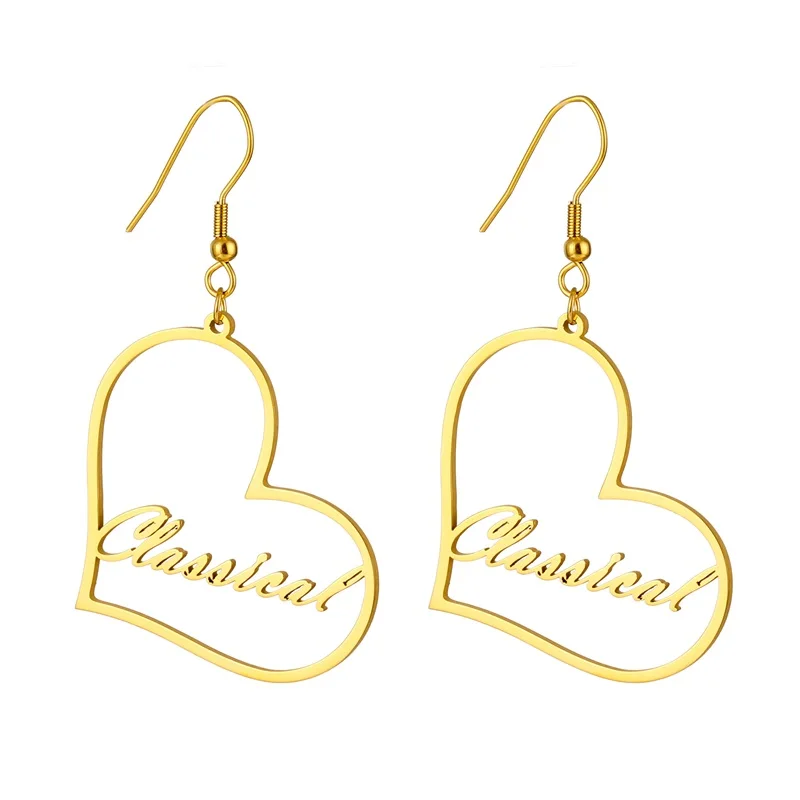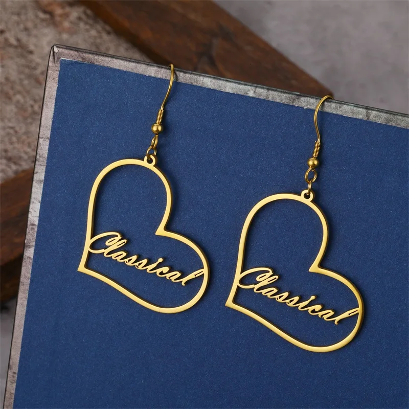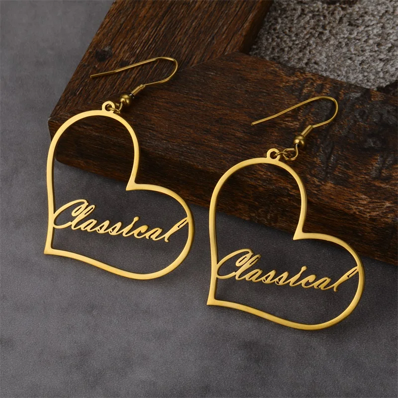 Нержавеющая сталь пользовательские сердца имя, крупноразмерные блестящие серьги для женщин персонализировать пользовательский раунд любящее сердце висячие серьги, ювелирные изделия для девушек, подарки