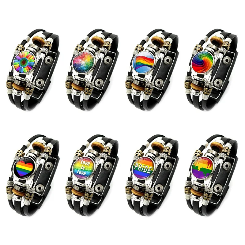 Браслет из черной кожи, многослойный, винтажный, бисексуал, с застежкой-кнопкой, с надписью Love Is Love, для геев, с изображением ЛГБТ-радуги