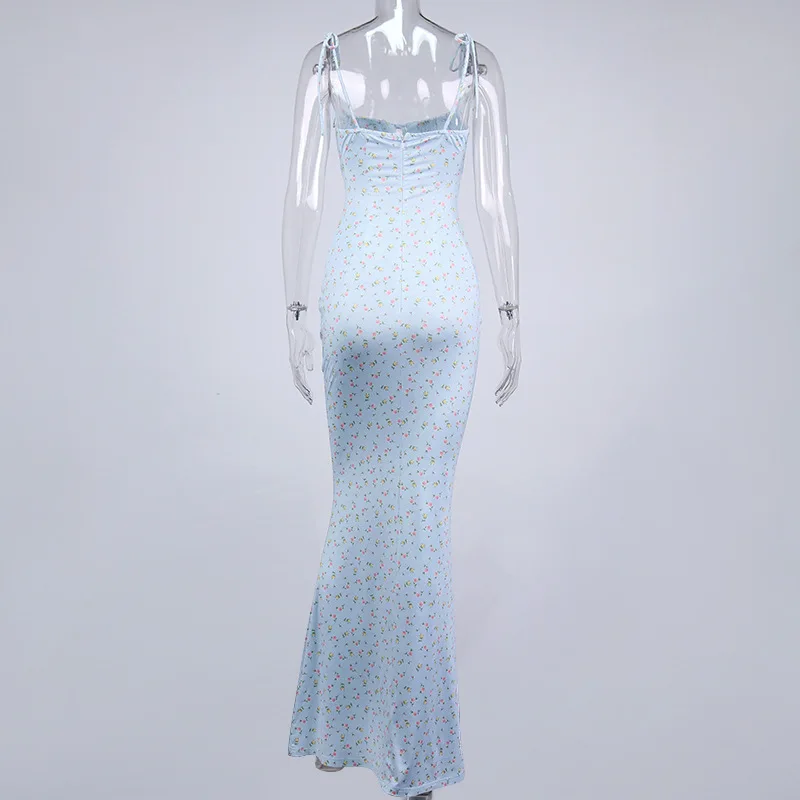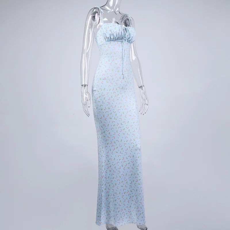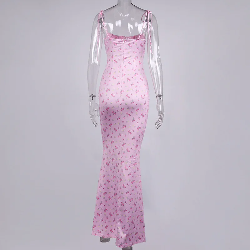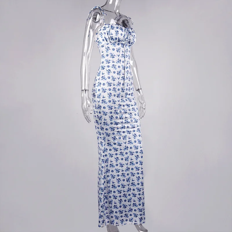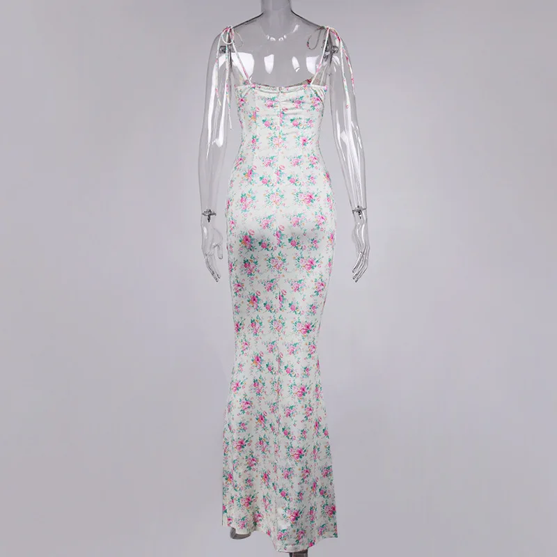 Платье-макси с цветочным принтом, без рукавов, с открытой спиной