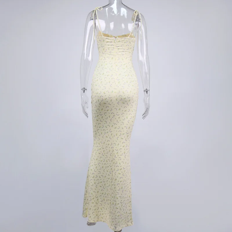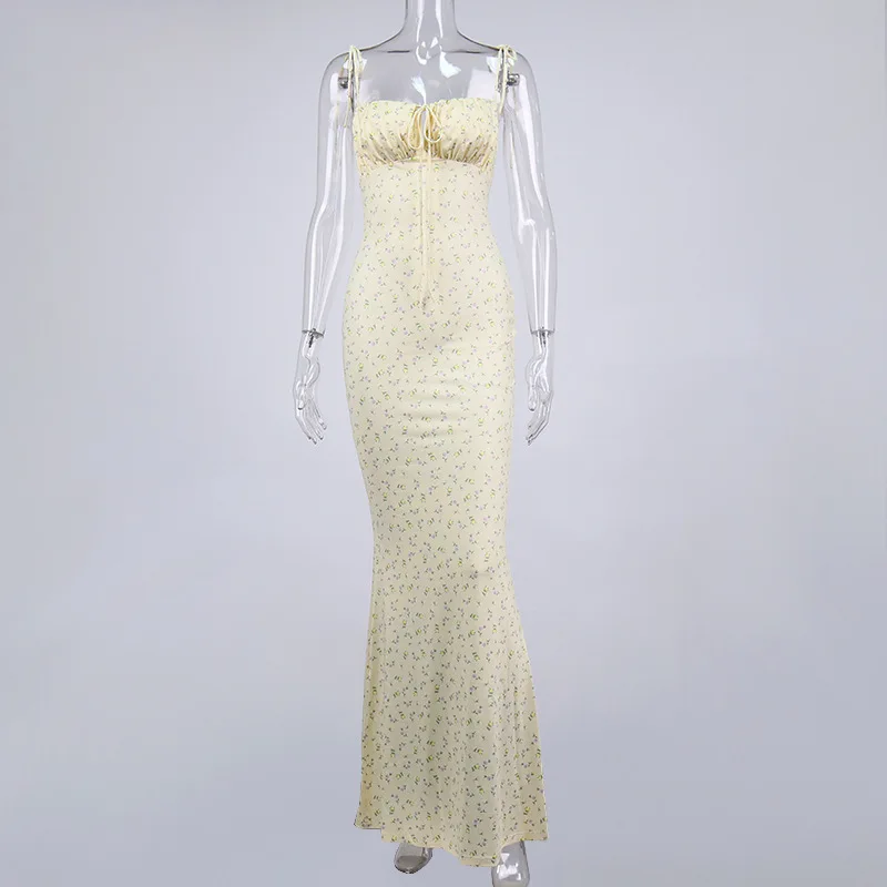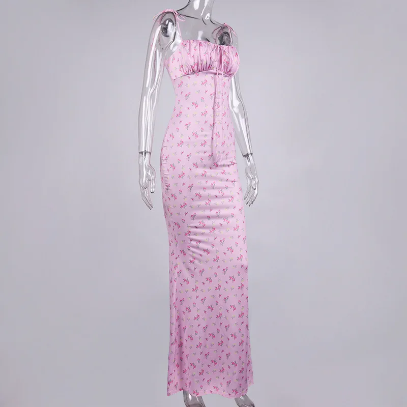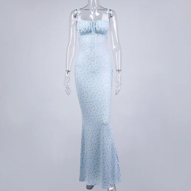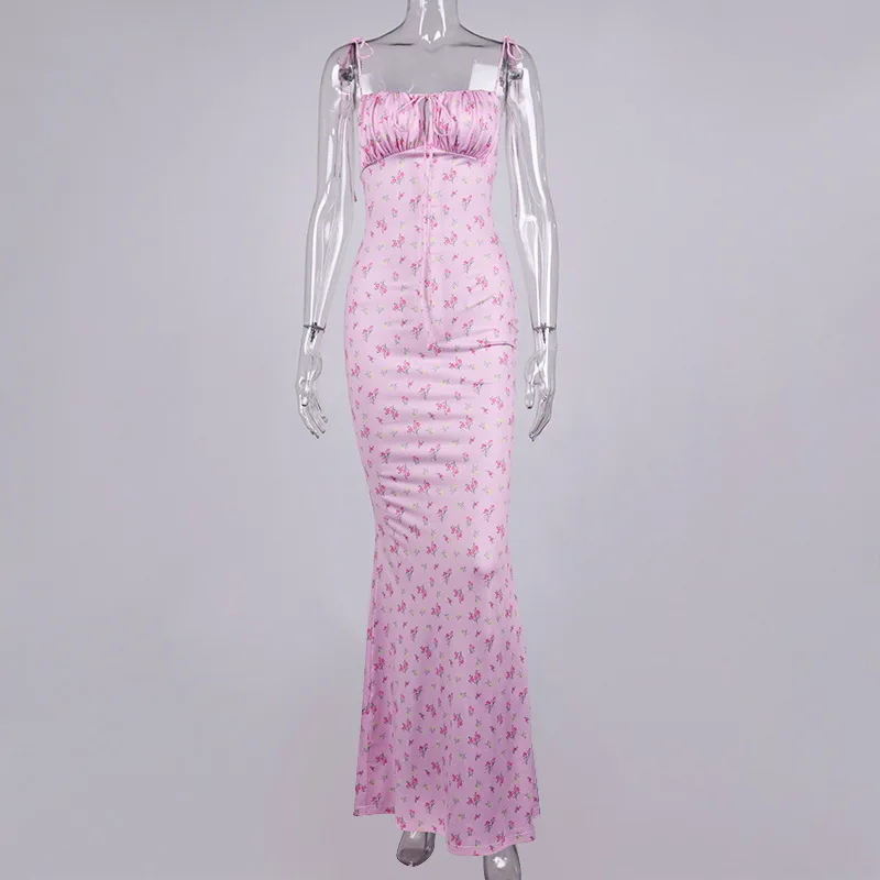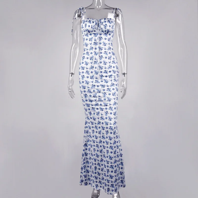 Платье-макси с цветочным принтом, без рукавов, с открытой спиной