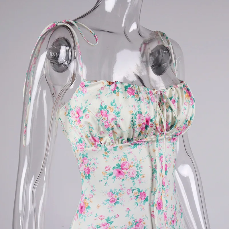 Женское платье с цветочным принтом, без рукавов, с открытой спиной
