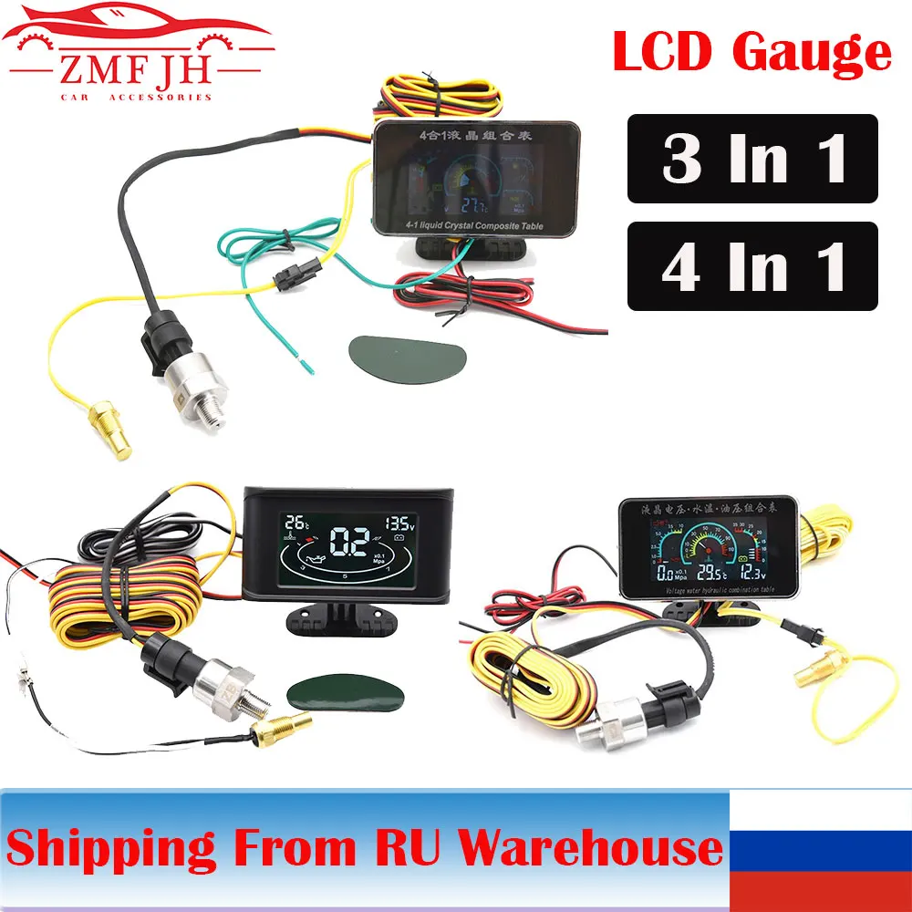 Многофункциональный 4 в 1 Универсальный ЖК-дисплей манометр автомобильный цифровой манометр масла вольтметр давления Температура воды масло уровня топлива с Сенсор