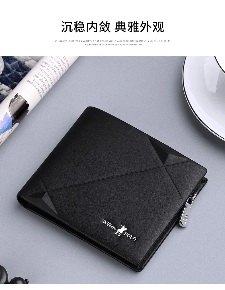 WilliamPolo мужской кожаный кошелек со встроенным карманом на молнии и держателем для карт, повседневный деловой кошелек 191431p