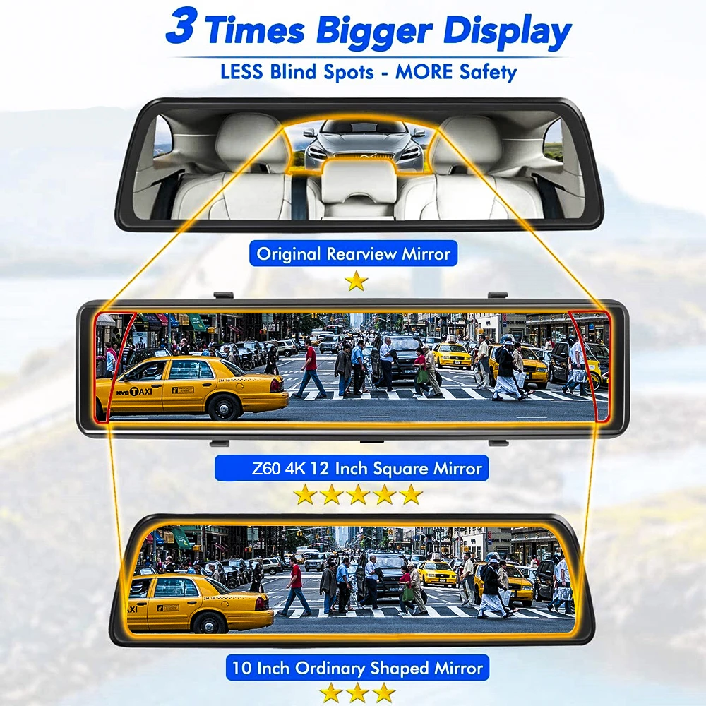 12 дюймов 4K Видеорегистраторы для автомобилей зеркало GPS WiFi Автомобильный видео Регистраторы 3840*2160P Sony IMX415 Зеркало заднего вида авто регистратор видеорегистратор ночного видения